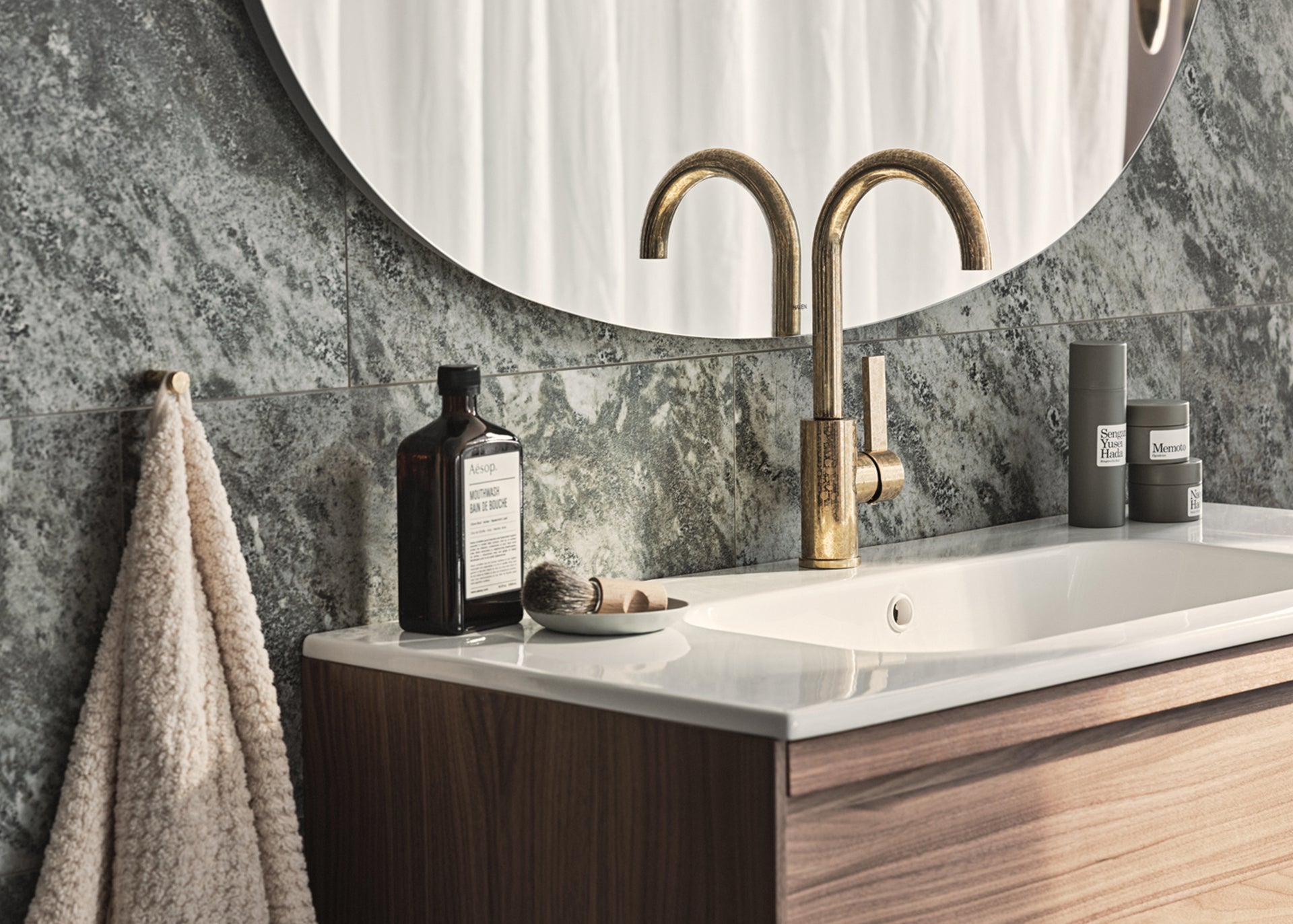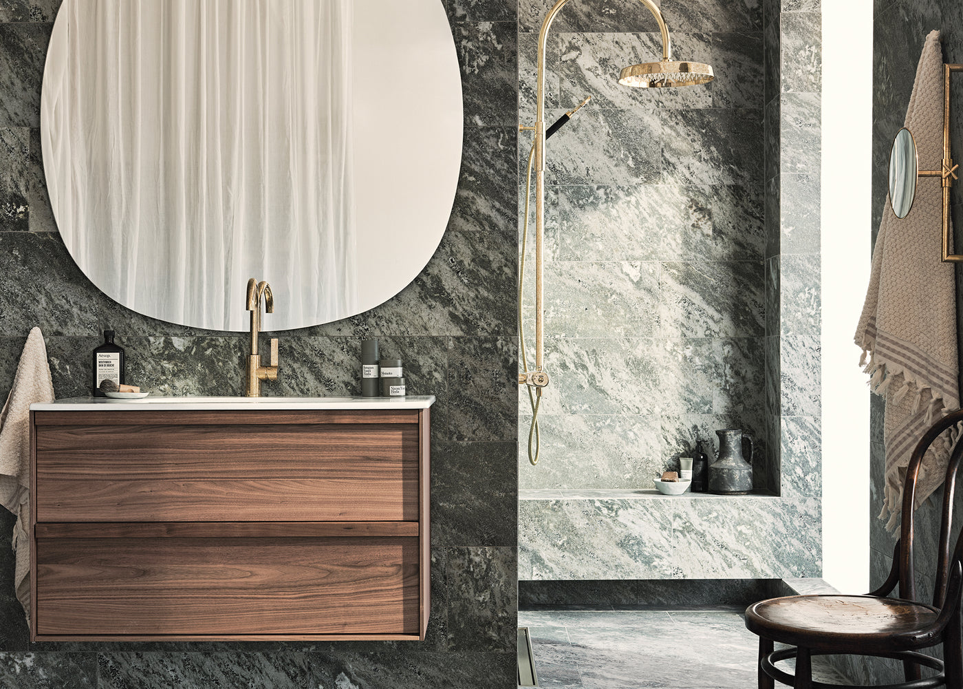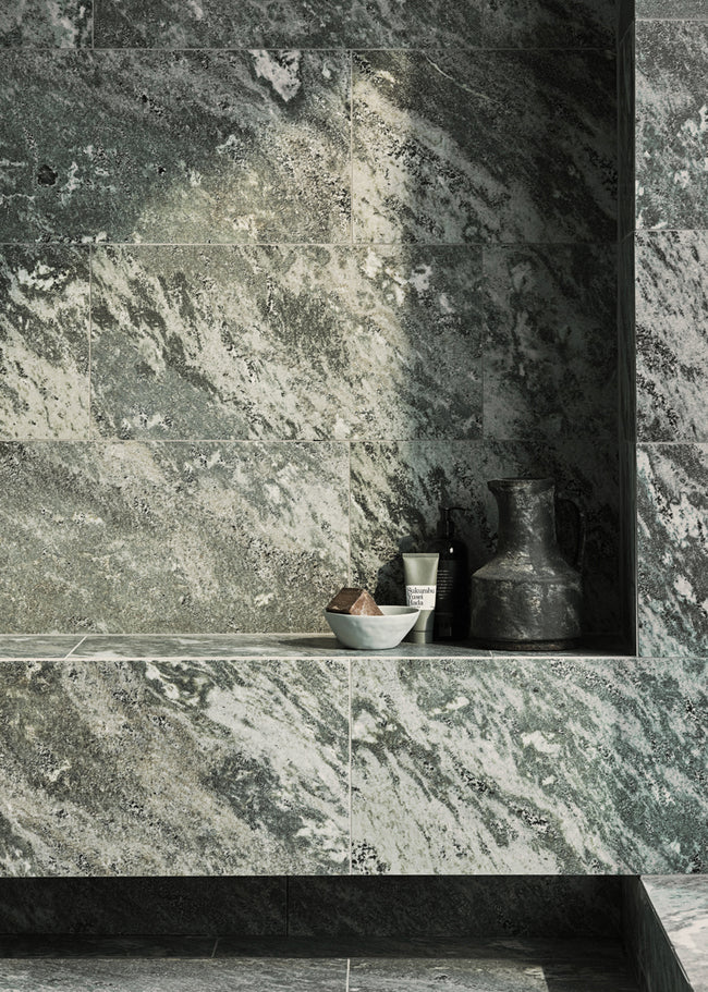 Kolmården i granitkeramik är en modern tolkning av den ikoniska kolmårdsmarmorn, en av Sveriges mest omhuldade och historiskt betydelsefulla naturstenar. Inspirerad av den klassiska svenska marmorn med samma namn som brutits i Östergötland i århundraden. Serien har en matt yta och varierar likt marmorn i mönster och nyans från grönsvarta partier till ljusgröna och grå skiftningar.