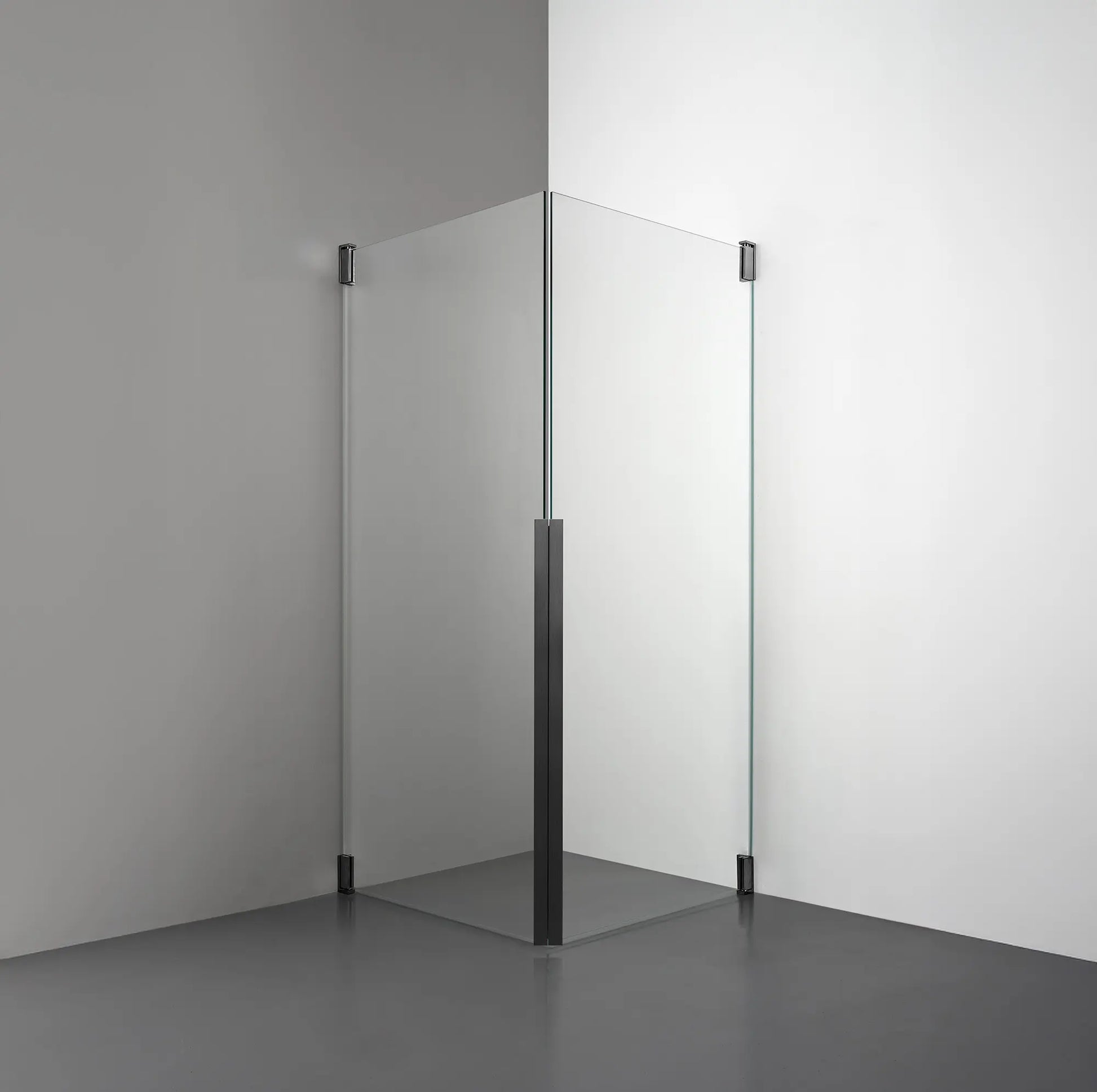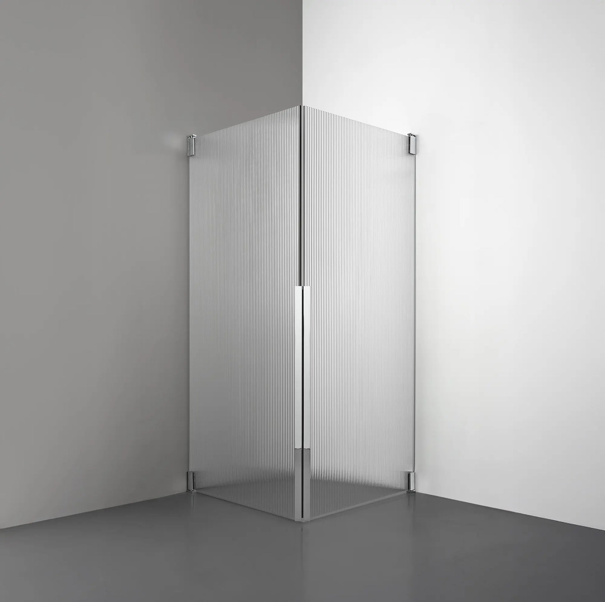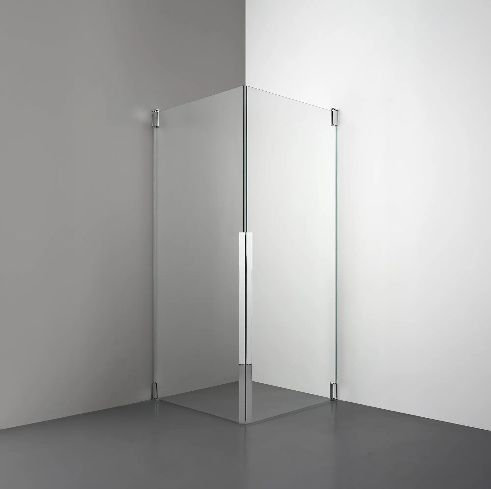 Med ROOH R2 Duschhörna Rak Dörr + Rak Dörr, får du en hörnlösning i 8 mm glas som kombinerar två raka, Infällbara dörrar. Den genomtänkta placeringen av de integrerade handtagen i glaset ger ett enhetligt och modernt uttryck. De dubbla dörrarna skapar en bra ingång, vilket ger maximal rumsutnyttjande, samtidigt som den lyfter fram de exklusiva beslagen som ger en extra dimension av elegans.