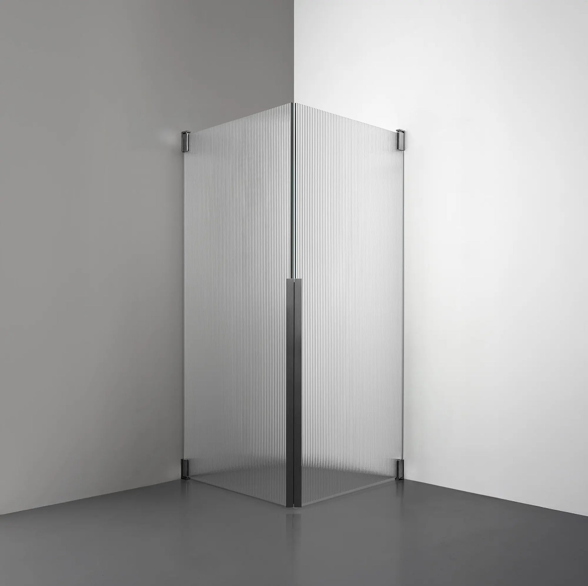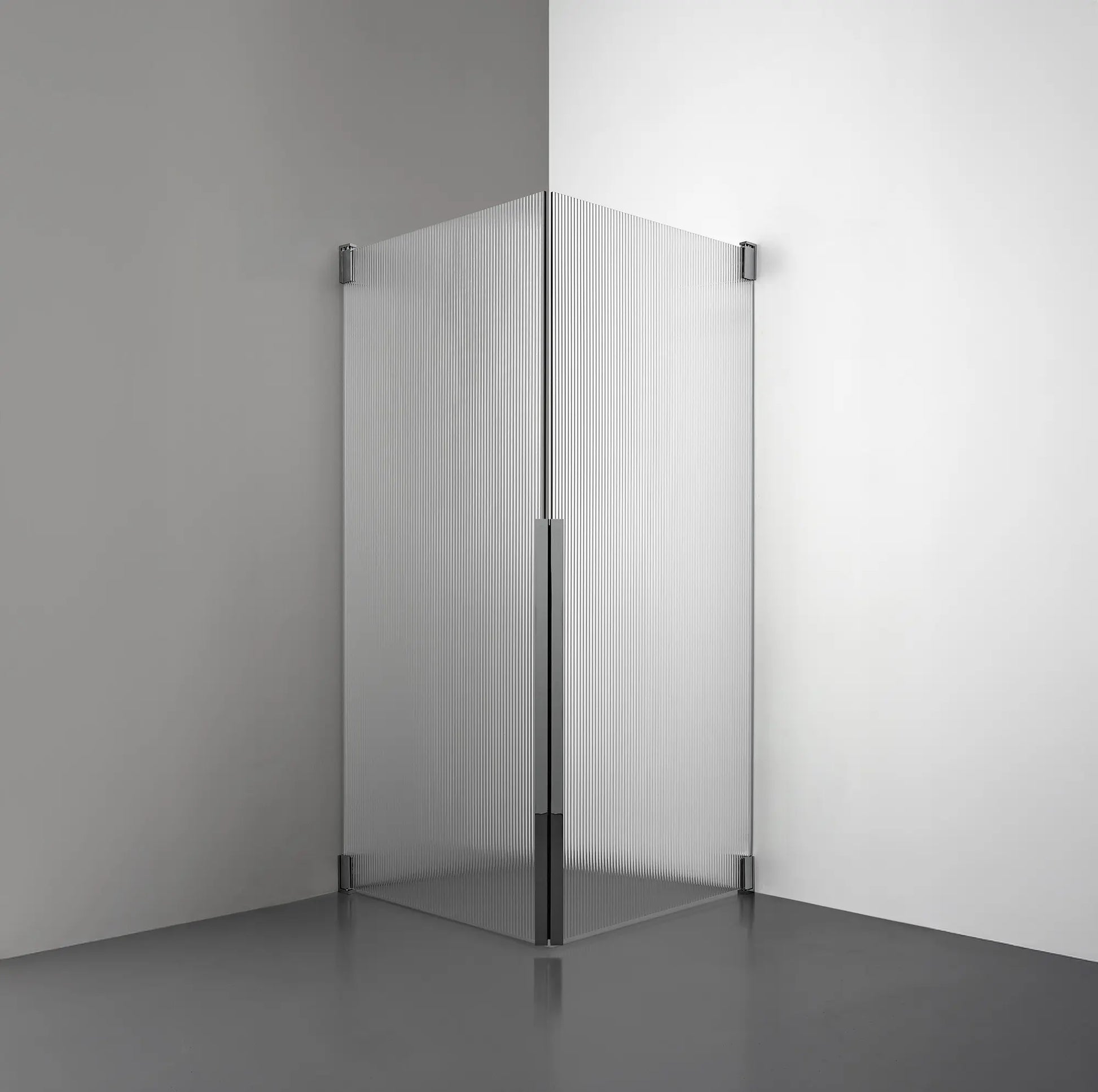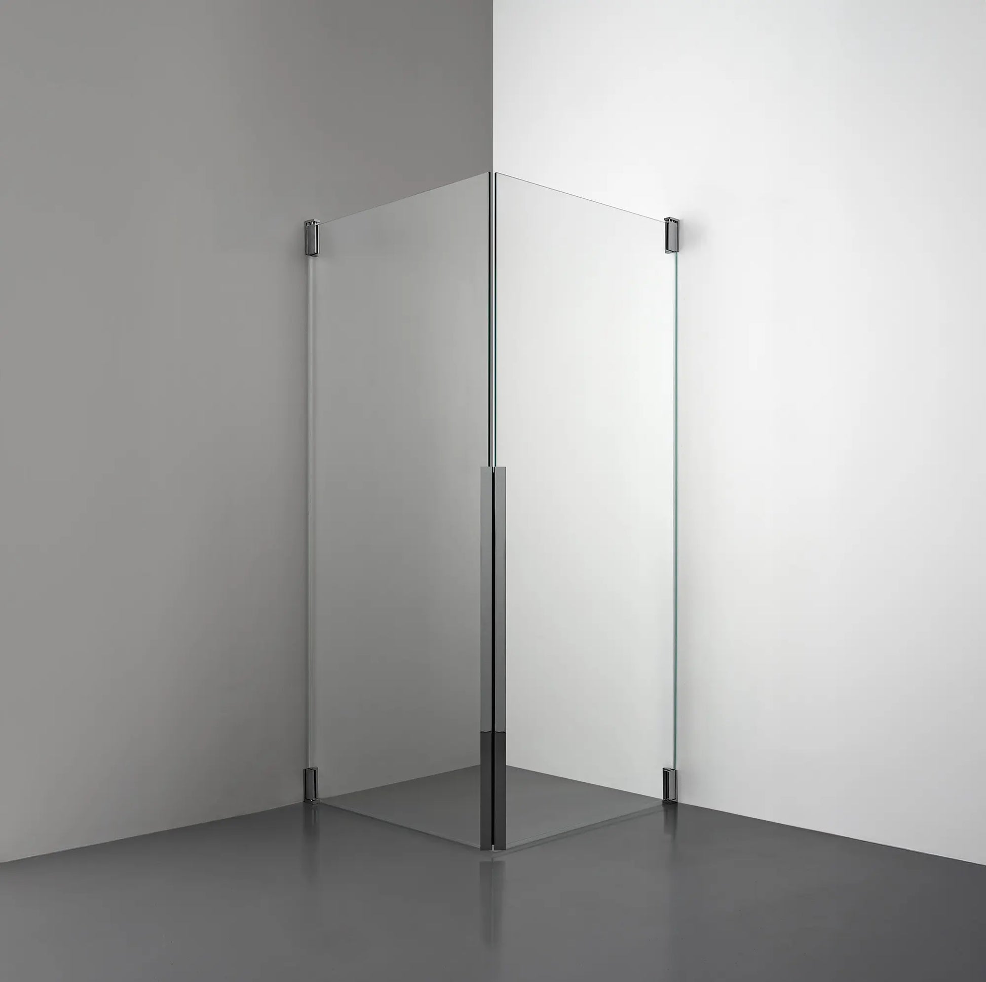 Med ROOH R2 Duschhörna Rak Dörr + Rak Dörr, får du en hörnlösning i 8 mm glas som kombinerar två raka, Infällbara dörrar. Den genomtänkta placeringen av de integrerade handtagen i glaset ger ett enhetligt och modernt uttryck. De dubbla dörrarna skapar en bra ingång, vilket ger maximal rumsutnyttjande, samtidigt som den lyfter fram de exklusiva beslagen som ger en extra dimension av elegans.