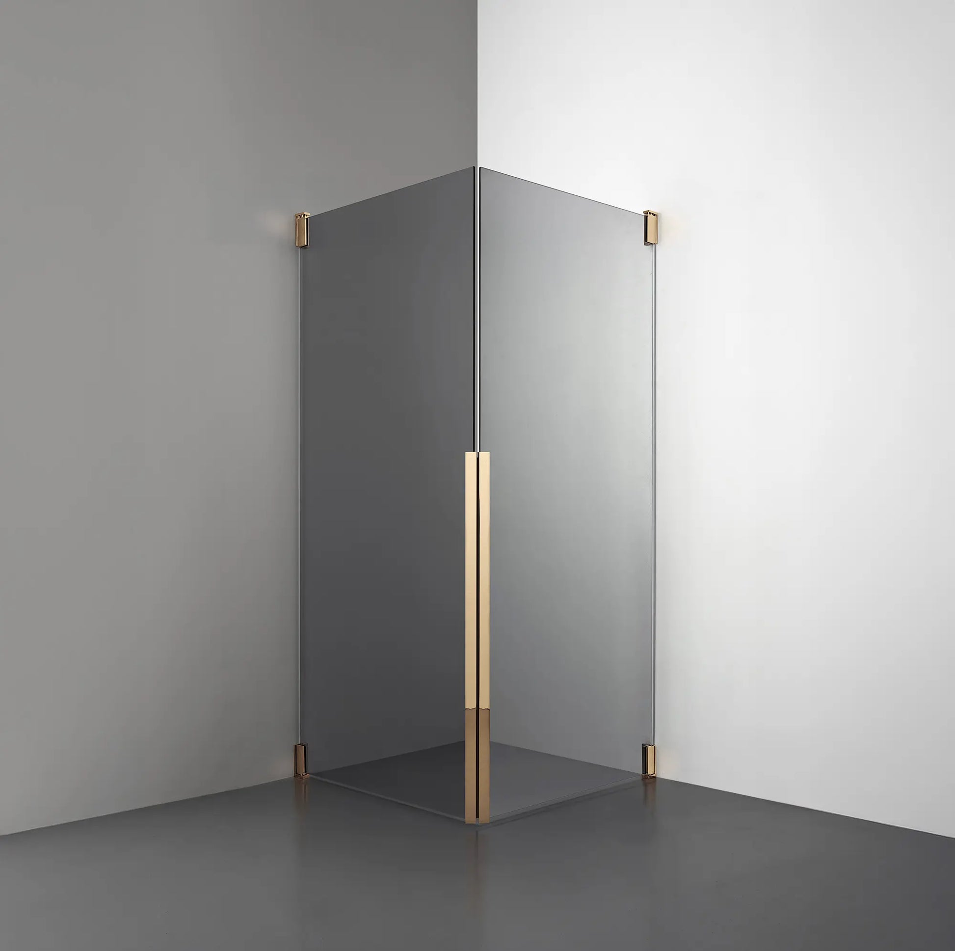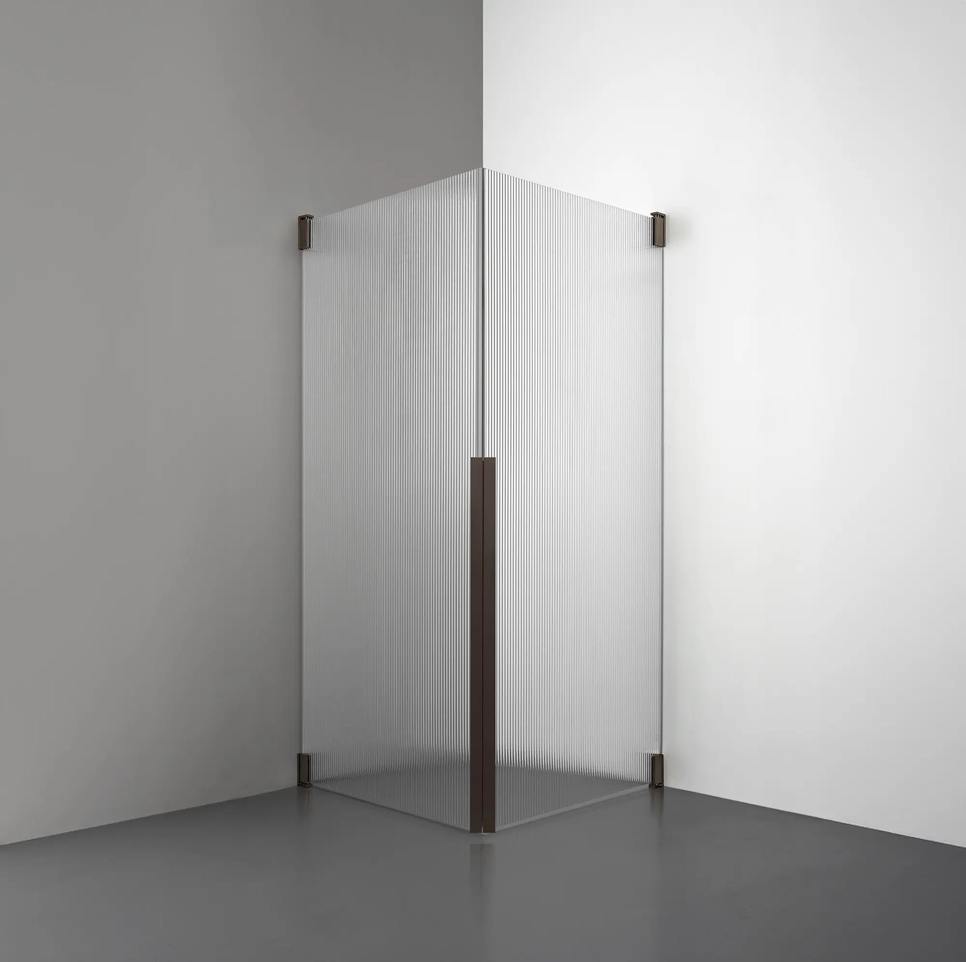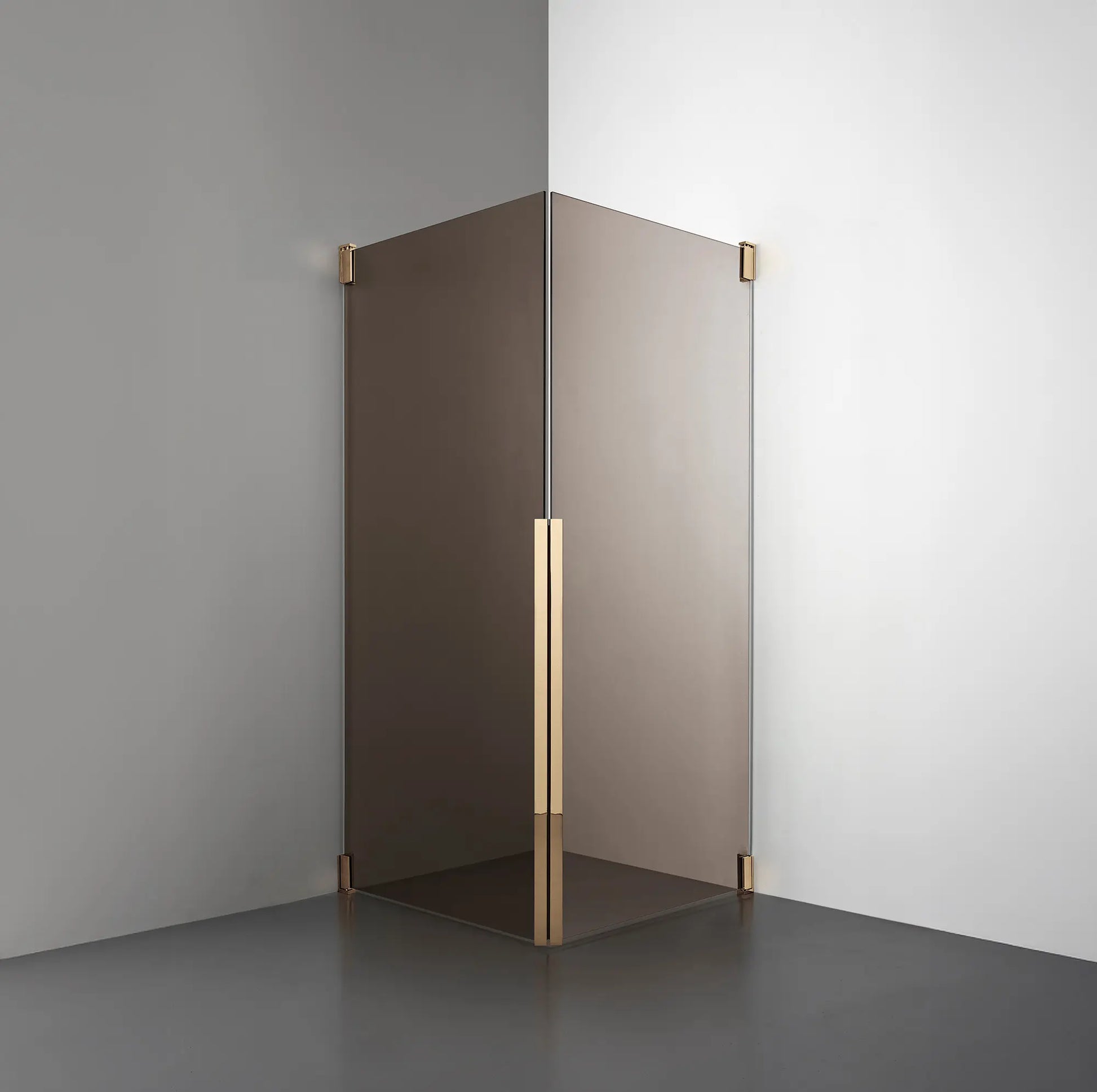 R2 är serien för dig som söker en duschlösning med design utöver det vanliga. Lägg märke till lyftgångjärnen som är placerade längst ut i hörnorna för ett harmoniskt uttryck och hur glasets högpolerade kant möter det elegant integrerade handtaget. R2 tillverkas i 8mm glas som kan fås i varianterna extraklart, röktonat, bruntonat och räfflat, för att till exempel snyggt harmonisera med granitkeramik och badrumsinredning från Bricmate och Haven. Handtag och beslag är i massiv mässing och ytbehandlas i Tapwells fabriker, vilket garanterar perfekt färgmatchning med varumärkets takduschar och blandare.
