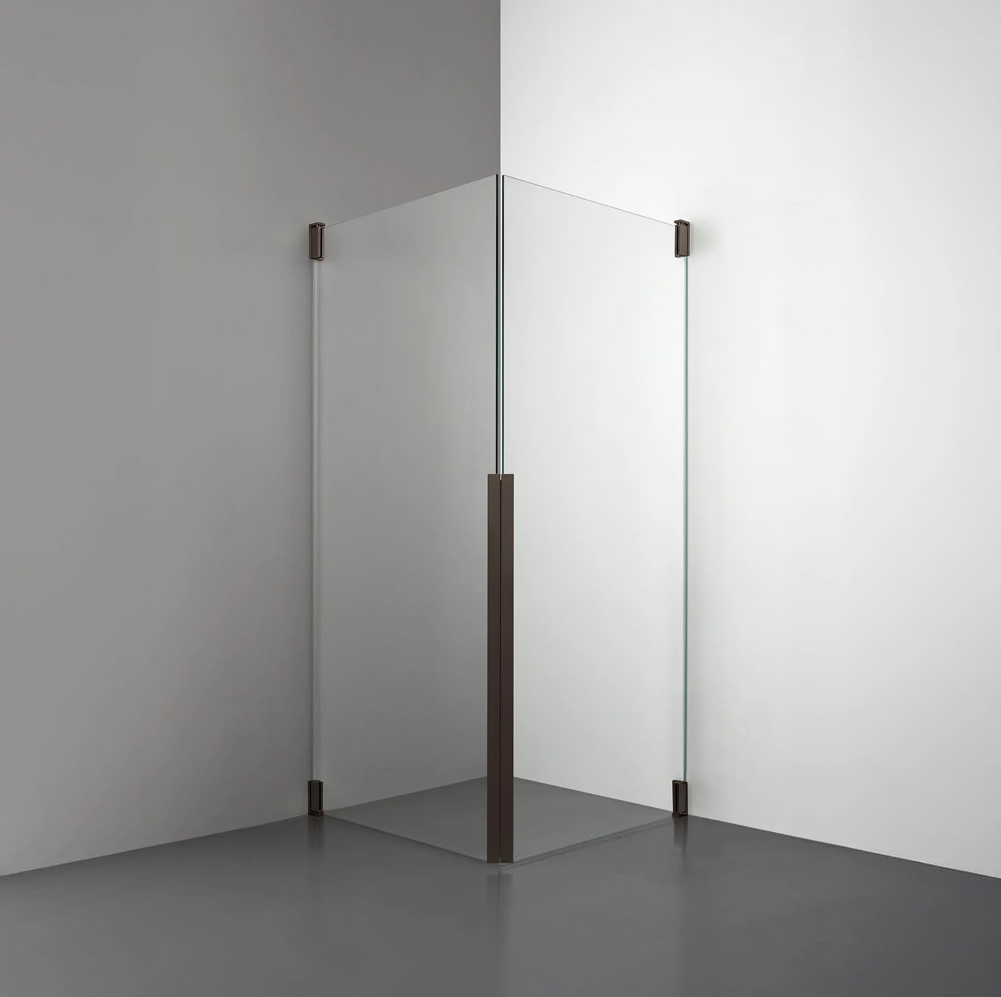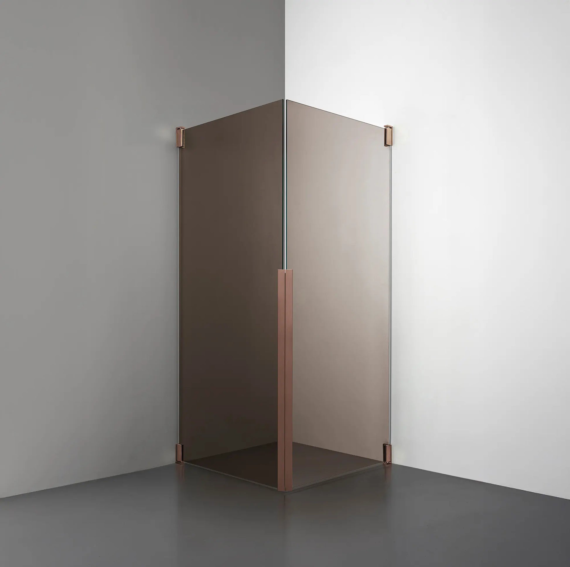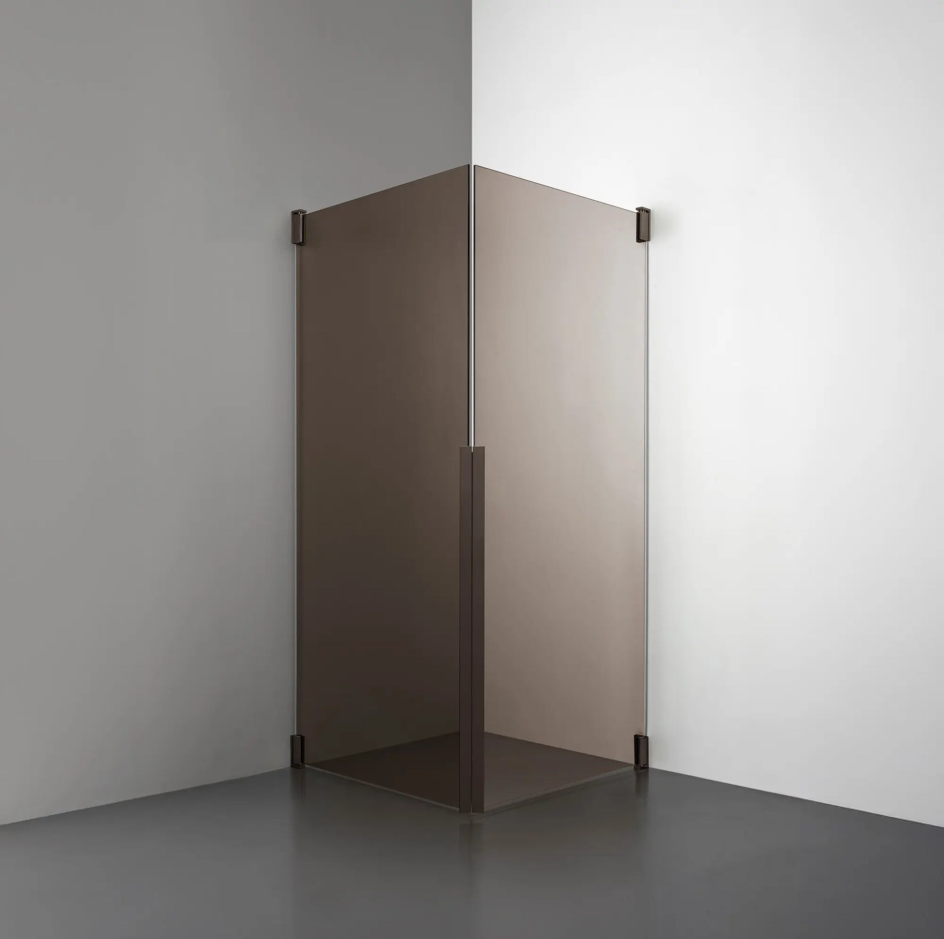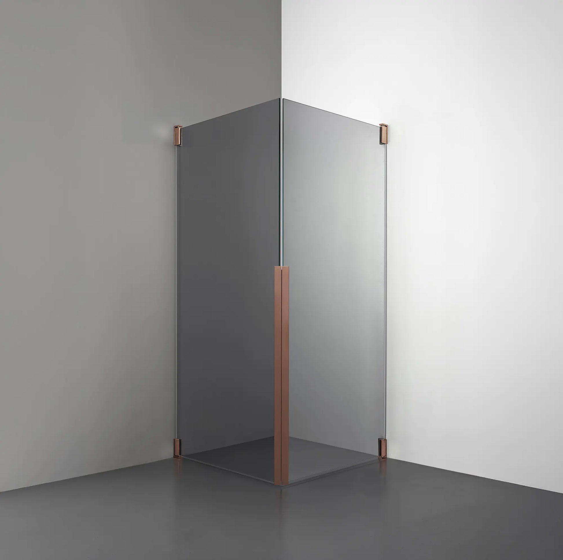 R2 är serien för dig som söker en duschlösning med design utöver det vanliga. Lägg märke till lyftgångjärnen som är placerade längst ut i hörnorna för ett harmoniskt uttryck och hur glasets högpolerade kant möter det elegant integrerade handtaget. R2 tillverkas i 8mm glas som kan fås i varianterna extraklart, röktonat, bruntonat och räfflat, för att till exempel snyggt harmonisera med granitkeramik och badrumsinredning från Bricmate och Haven. Handtag och beslag är i massiv mässing och ytbehandlas i Tapwells fabriker, vilket garanterar perfekt färgmatchning med varumärkets takduschar och blandare.