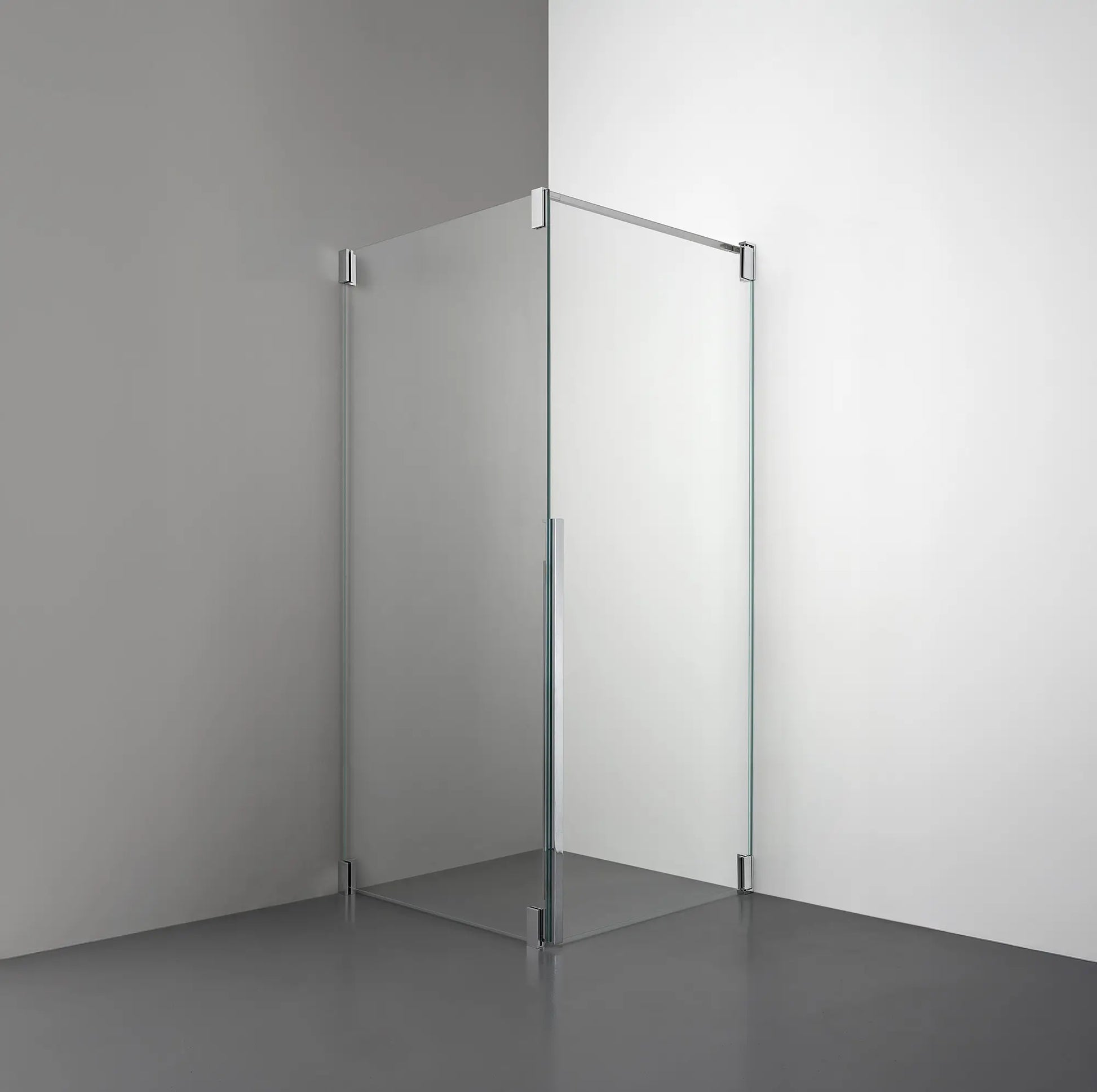 Denna modell kombinerar en fast glasvägg med en rak öppningsbar dörr i 8 mm glas. Den fasta väggen skapar stabilitet och ett rent, modernt intryck, medan den öppningsbara dörren – med integrerat handtag – ger flexibilitet och en lyxig detalj. Produkten är perfekt för hörn där man vill spara plats utan att kompromissa med kvalitet eller estetik, med stor möjlighet till måttanpassning.