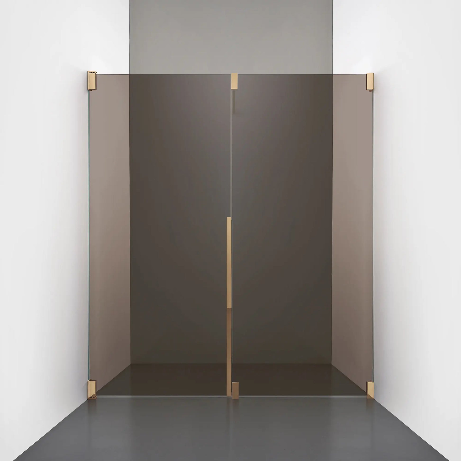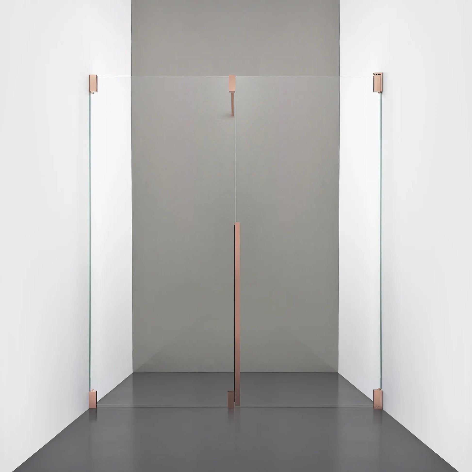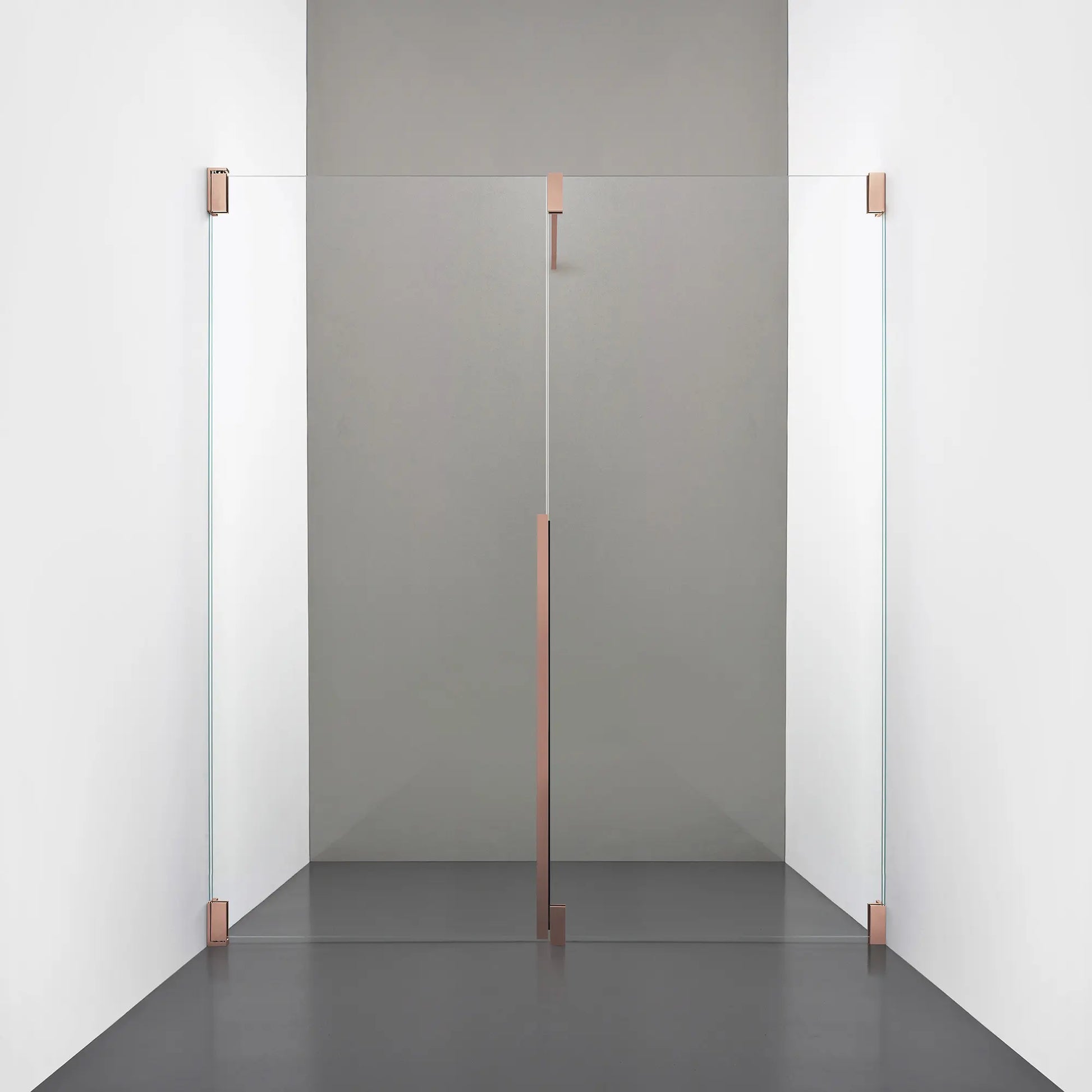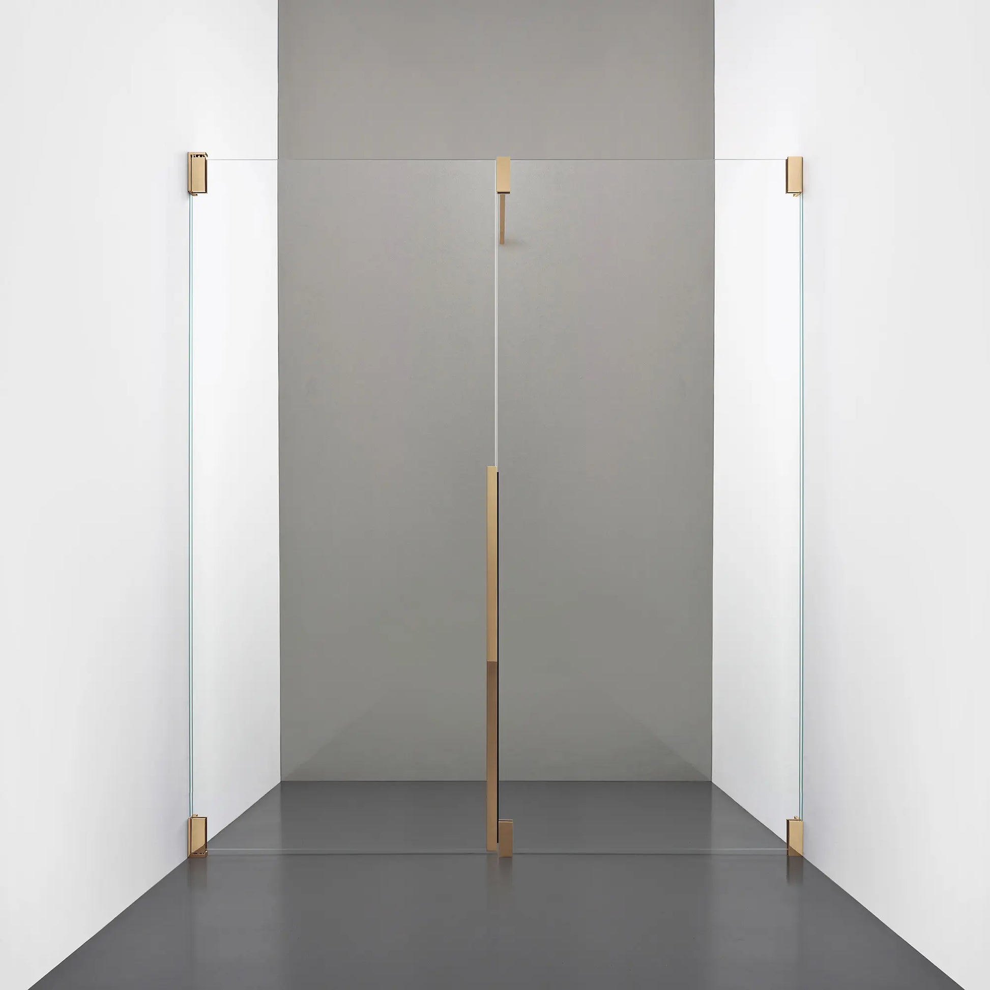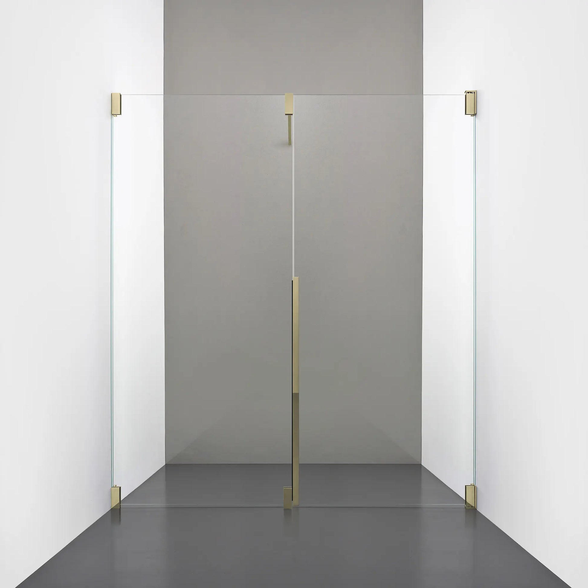 Denna modell kombinerar en fast, robust väggsektion med en öppningsbar dörr i 8 mm glas, vilket skapar en avskild duschnisch med en öppen känsla. Den fasta väggen bidrar till konstruktionens stabilitet, medan den öppningsbara delen möjliggör en generös duschingång. Handtaget integreras direkt i glaset och kompletteras med eleganta beslag i massiv mässing.