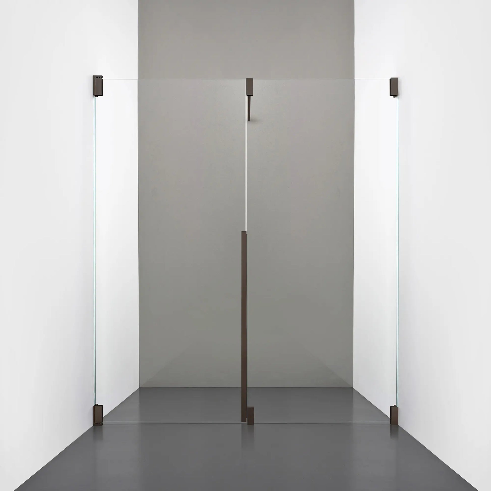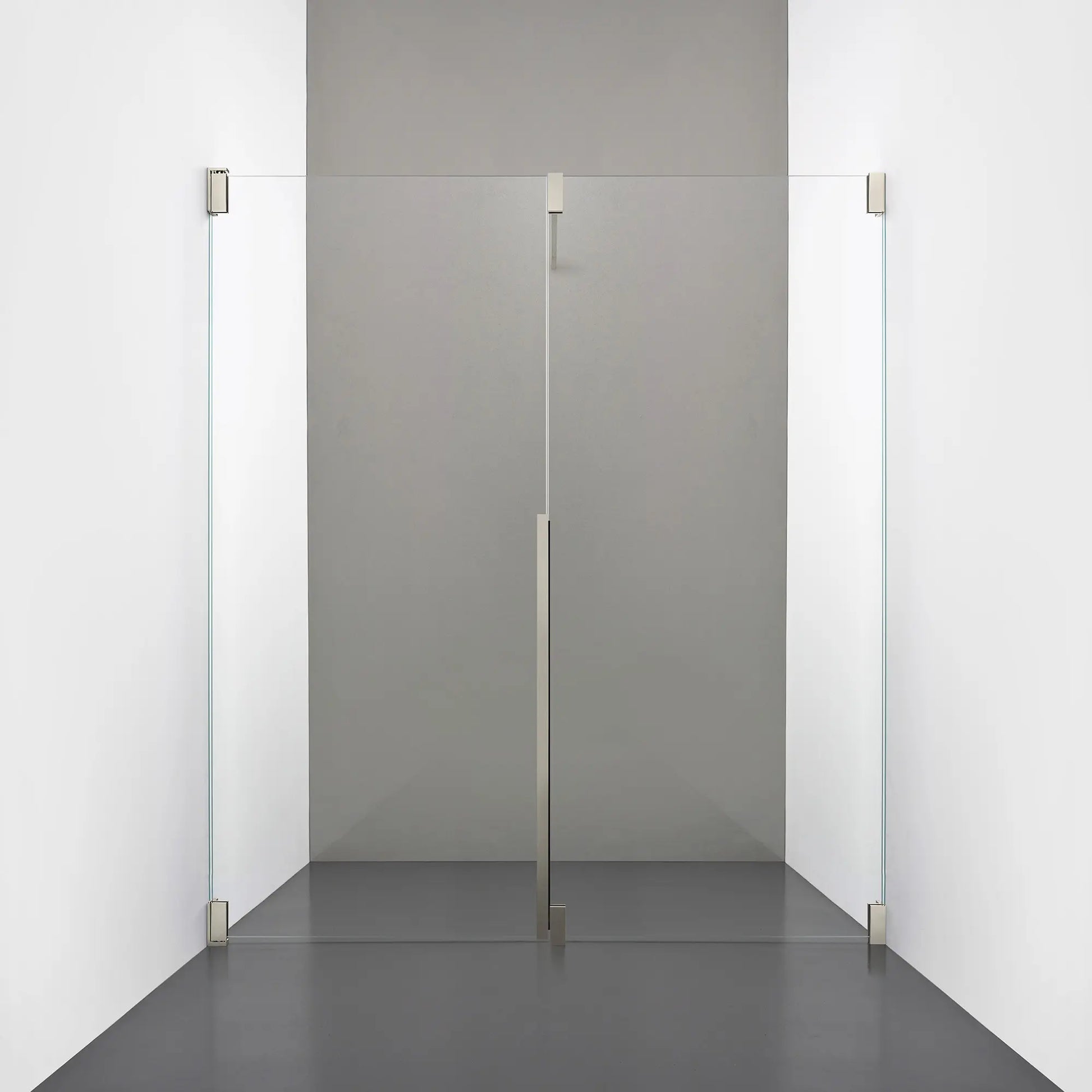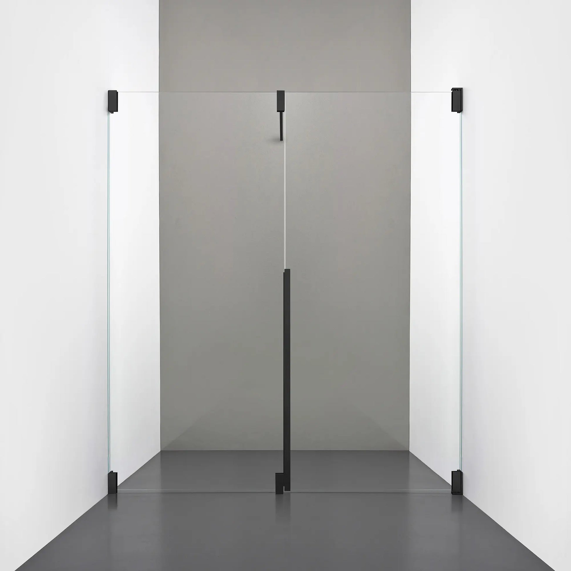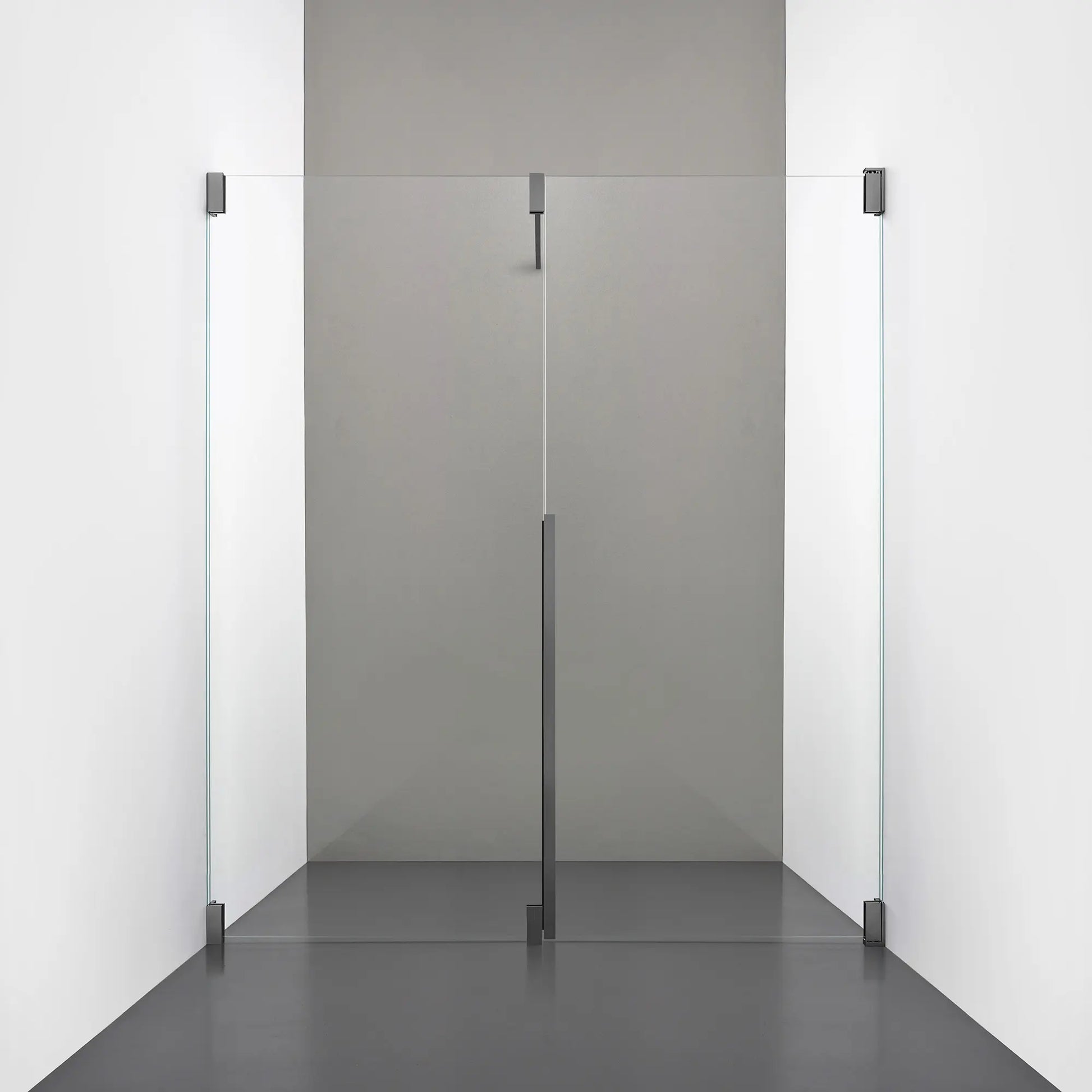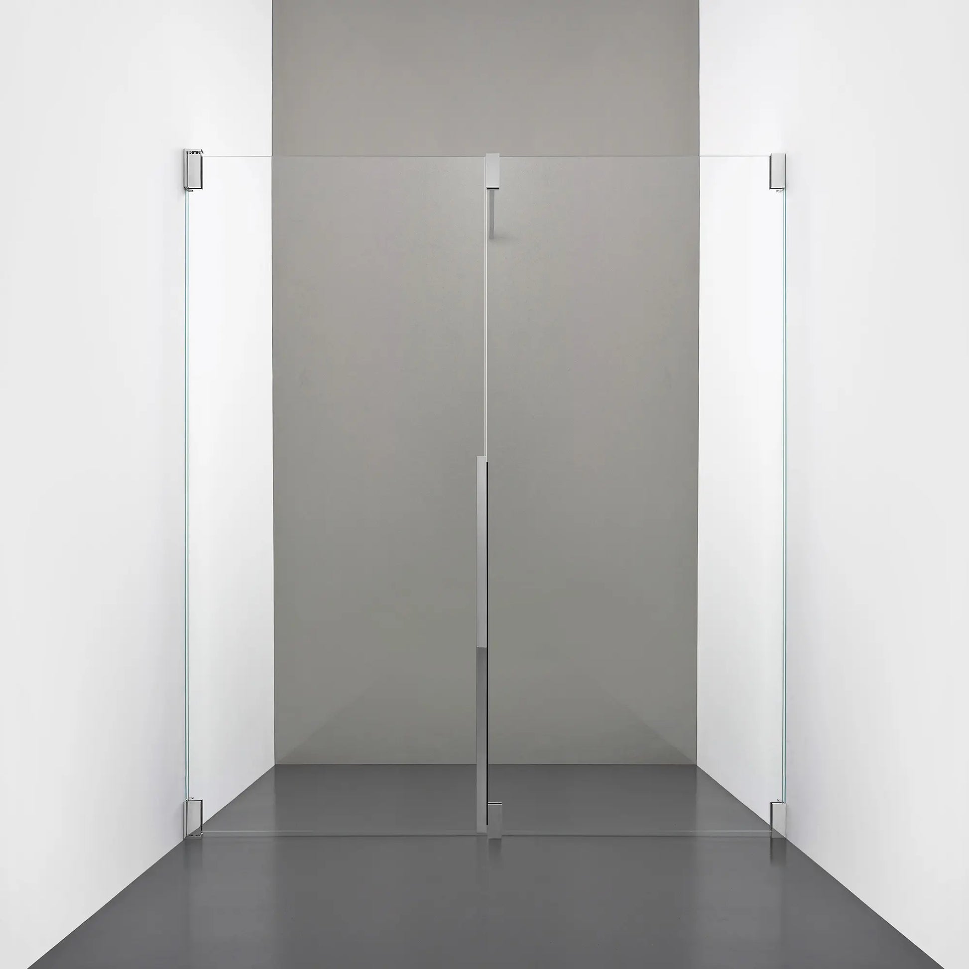 Denna modell kombinerar en fast, robust väggsektion med en öppningsbar dörr i 8 mm glas, vilket skapar en avskild duschnisch med en öppen känsla. Den fasta väggen bidrar till konstruktionens stabilitet, medan den öppningsbara delen möjliggör en generös duschingång. Handtaget integreras direkt i glaset och kompletteras med eleganta beslag i massiv mässing.