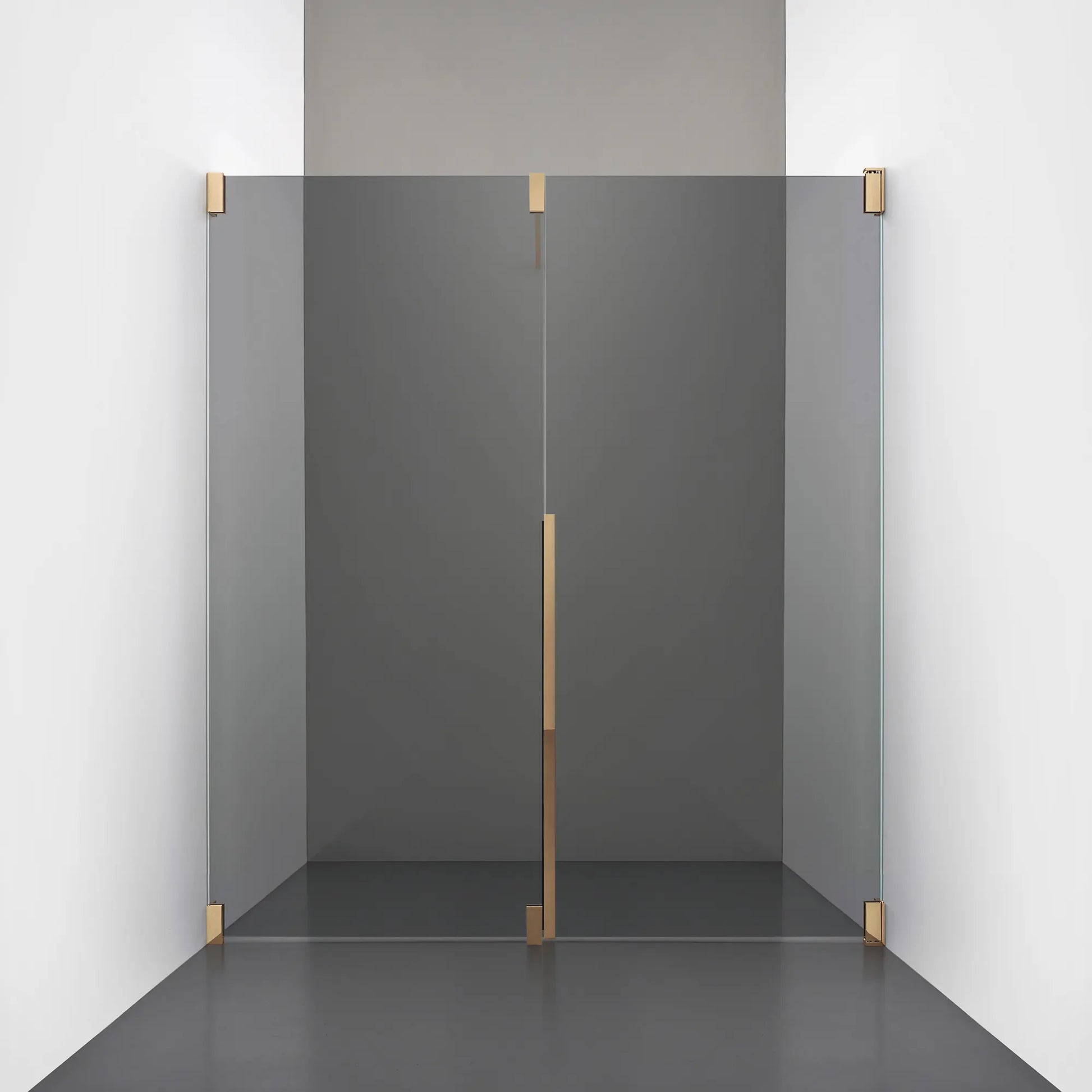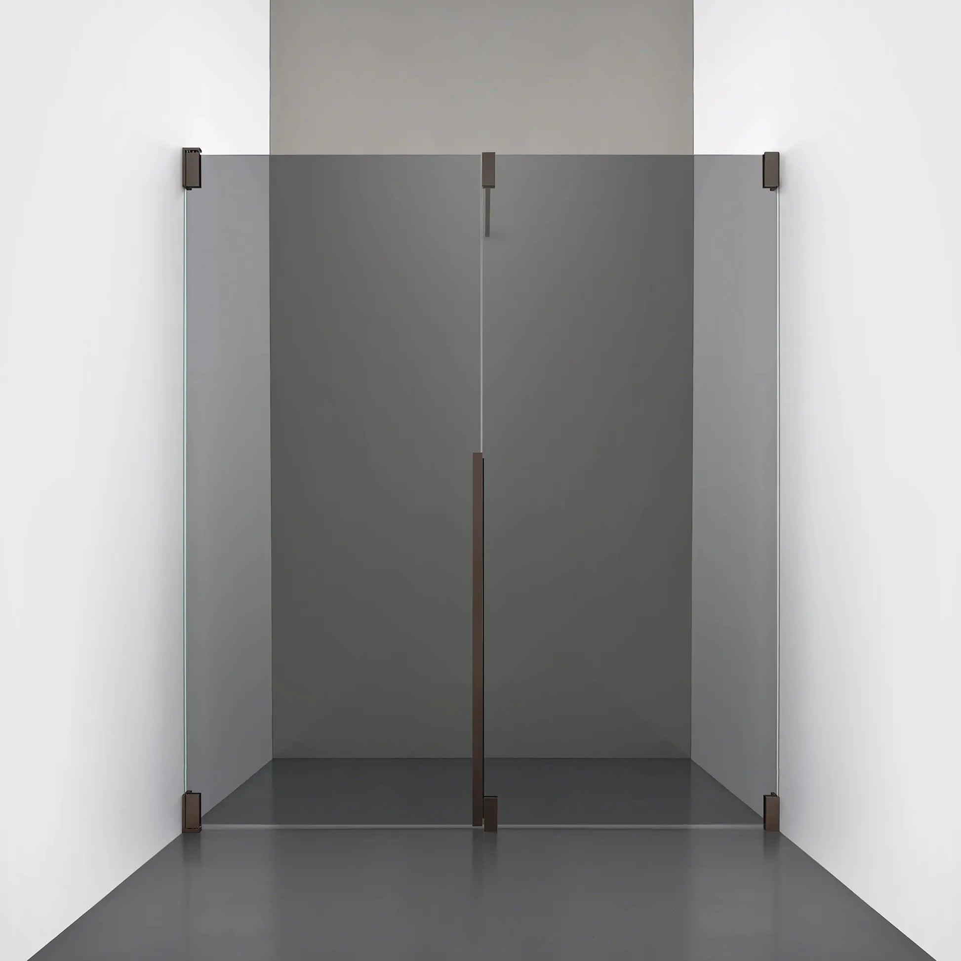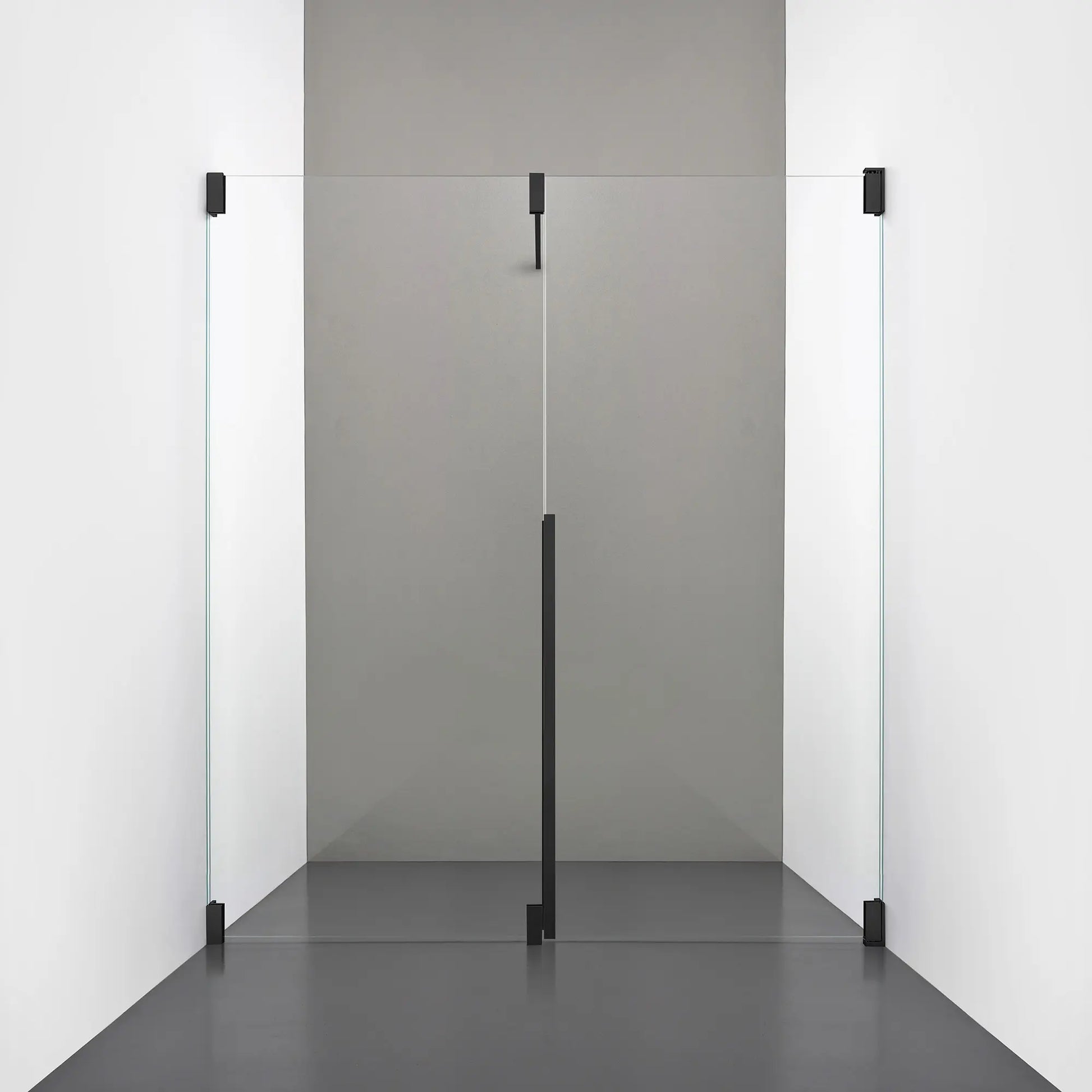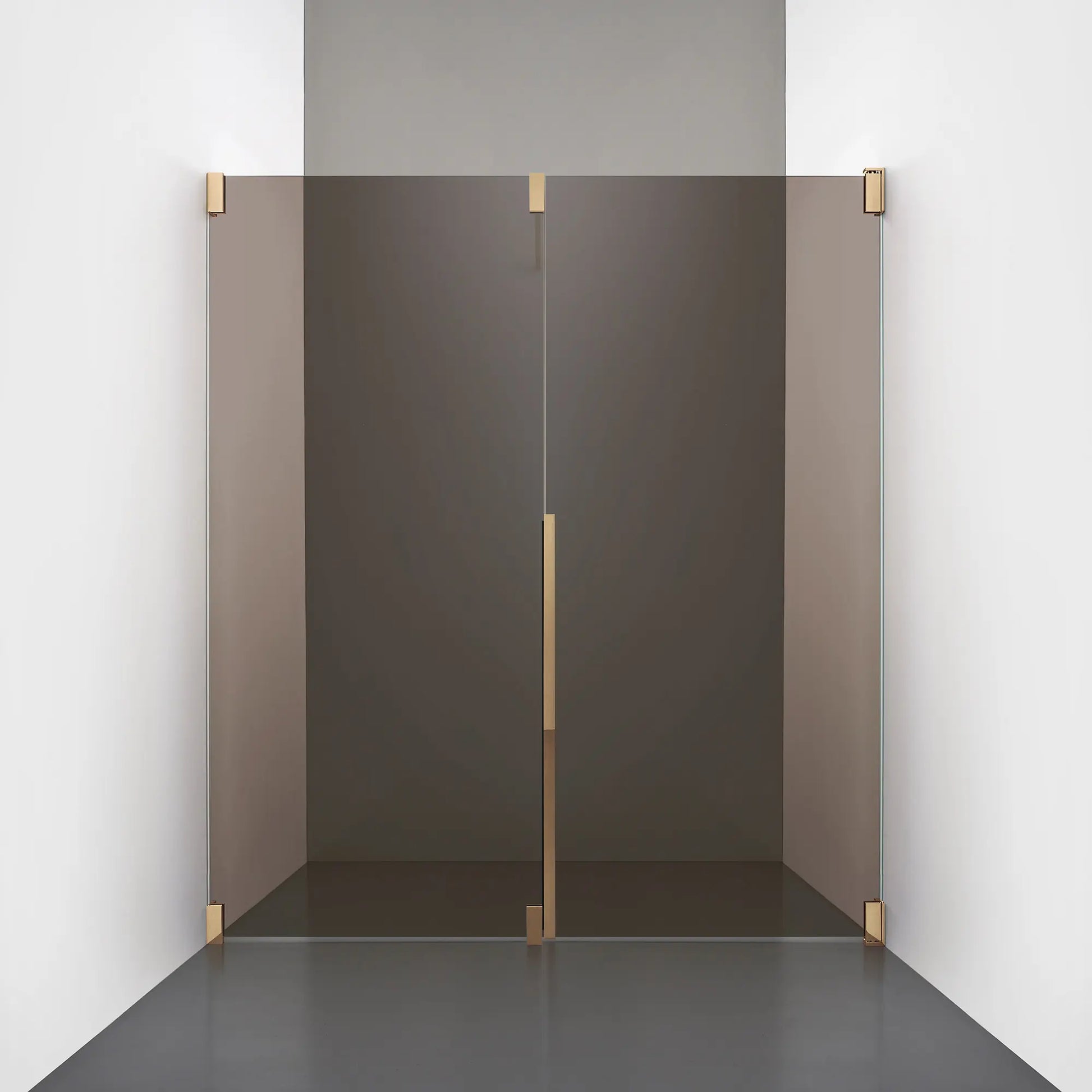 Denna modell kombinerar en fast, robust väggsektion med en öppningsbar dörr i 8 mm glas, vilket skapar en avskild duschnisch med en öppen känsla. Den fasta väggen bidrar till konstruktionens stabilitet, medan den öppningsbara delen möjliggör en generös duschingång. Handtaget integreras direkt i glaset och kompletteras med eleganta beslag i massiv mässing.