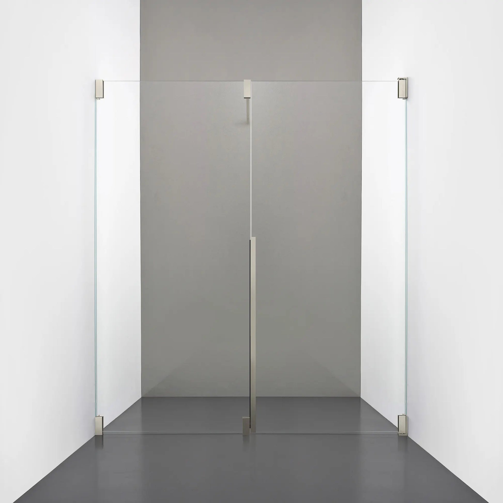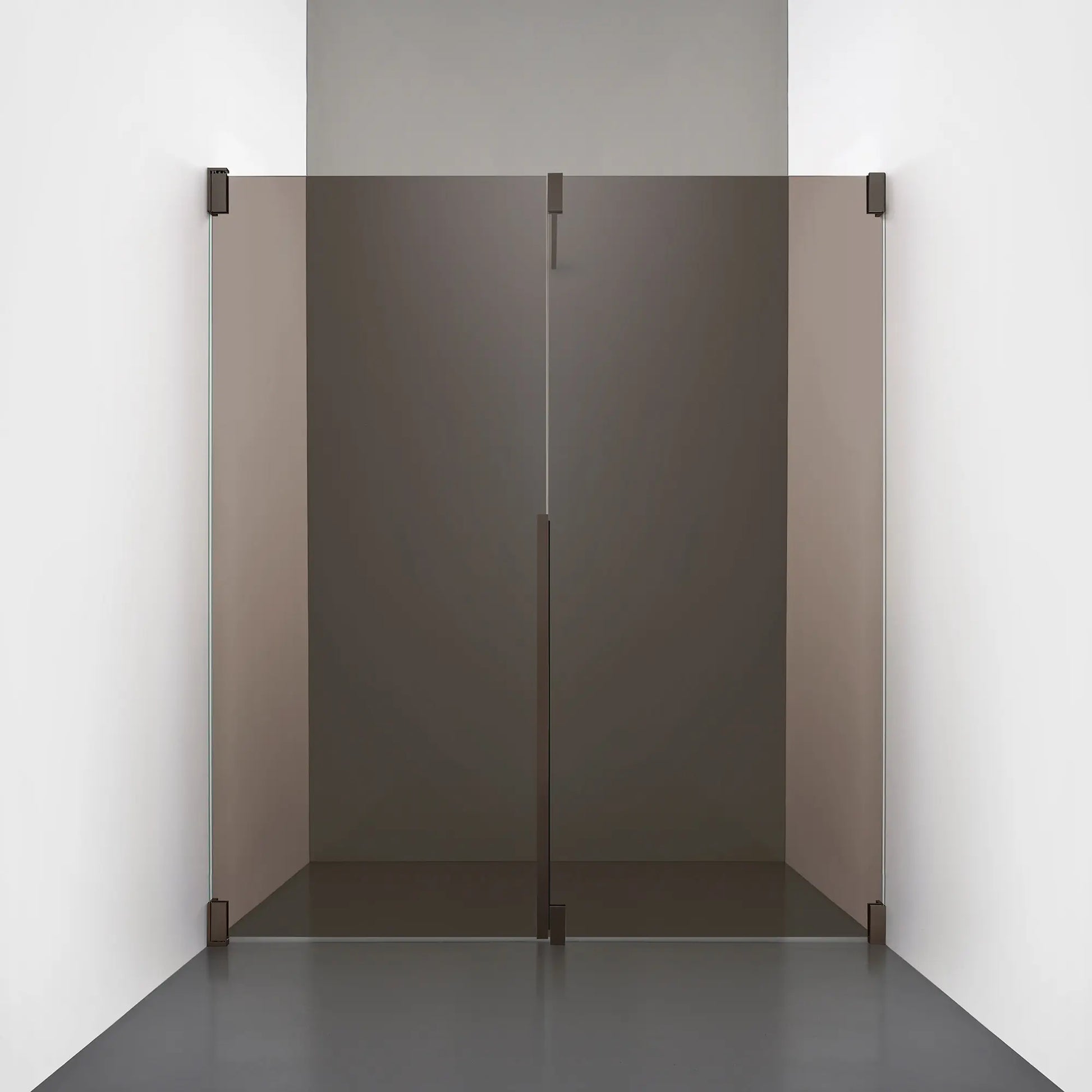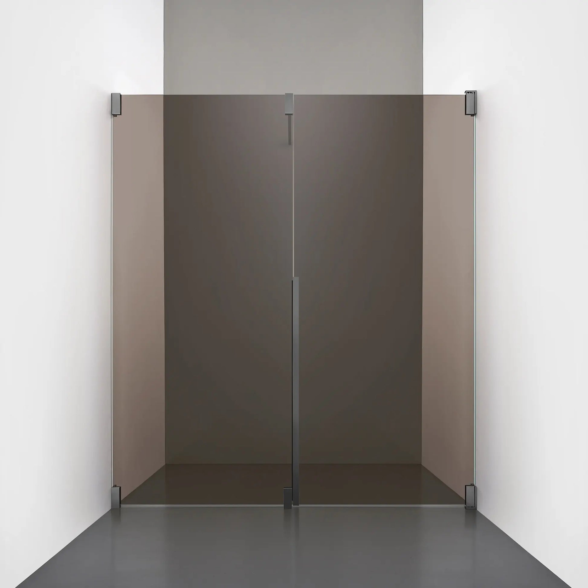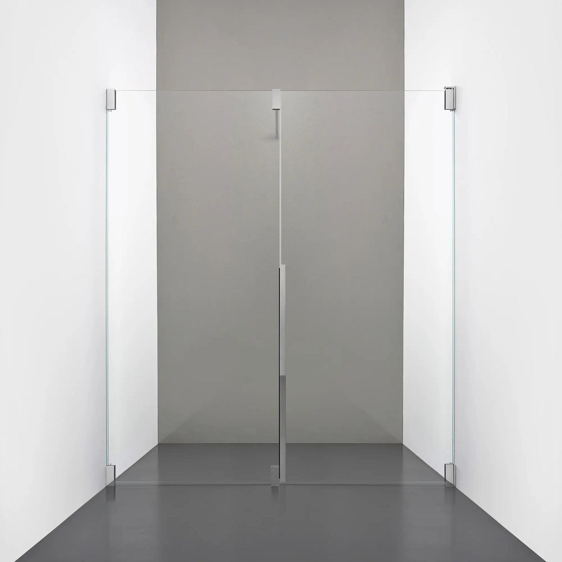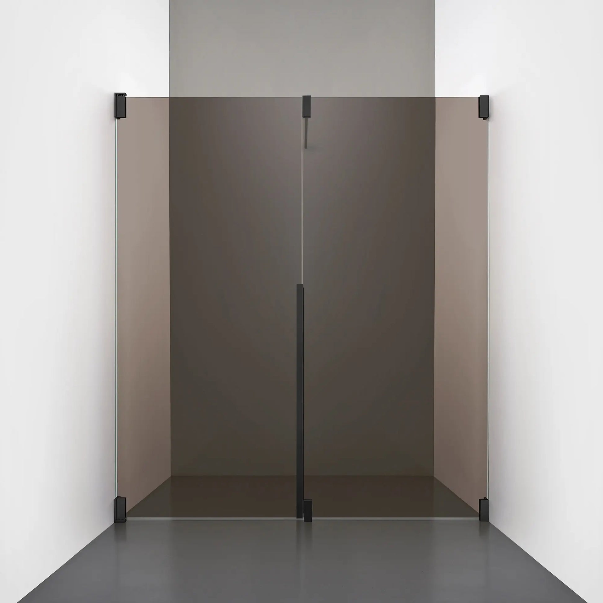 Denna modell kombinerar en fast, robust väggsektion med en öppningsbar dörr i 8 mm glas, vilket skapar en avskild duschnisch med en öppen känsla. Den fasta väggen bidrar till konstruktionens stabilitet, medan den öppningsbara delen möjliggör en generös duschingång. Handtaget integreras direkt i glaset och kompletteras med eleganta beslag i massiv mässing.