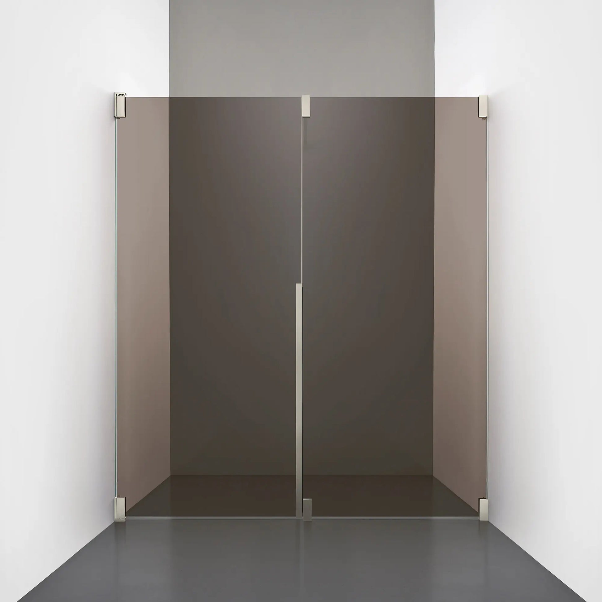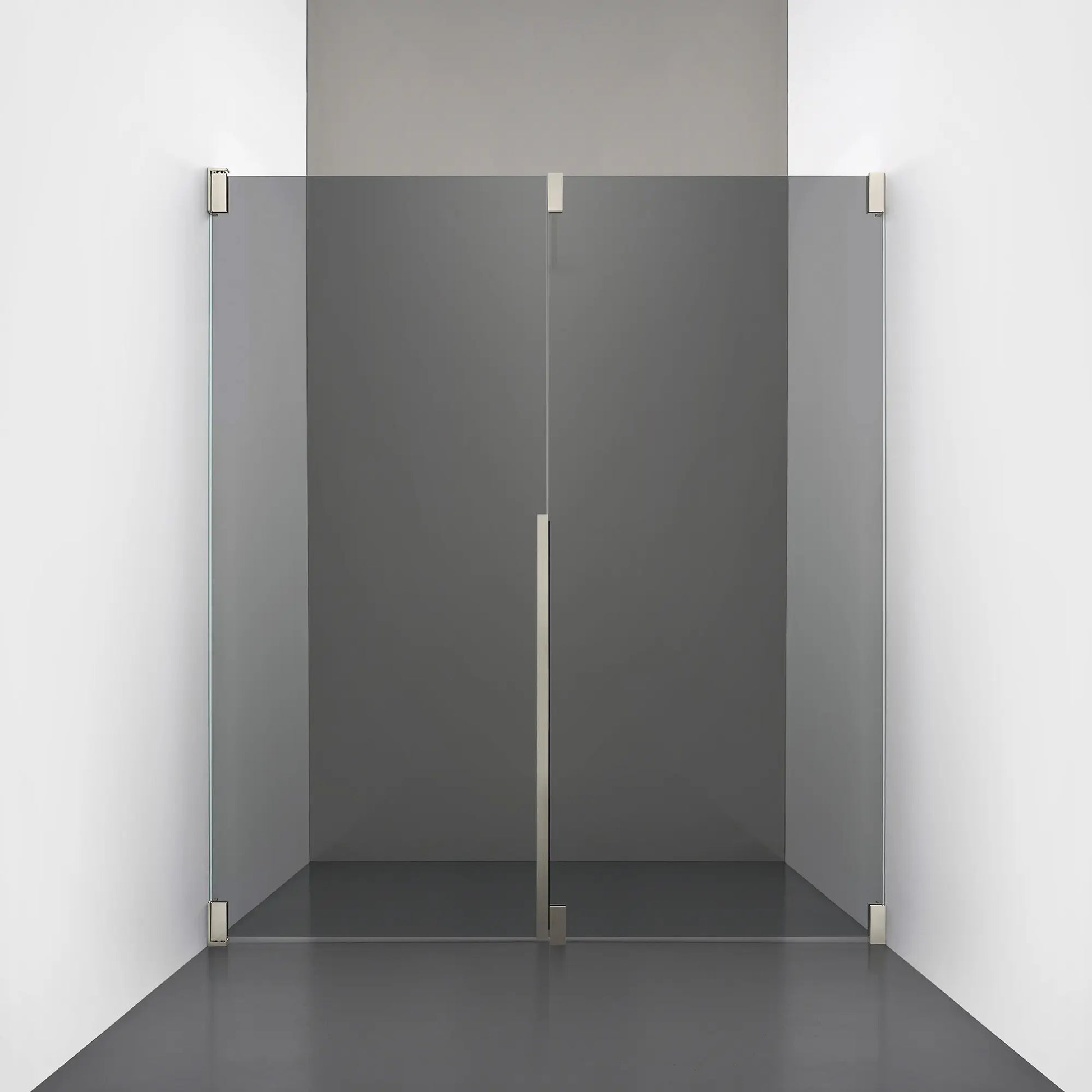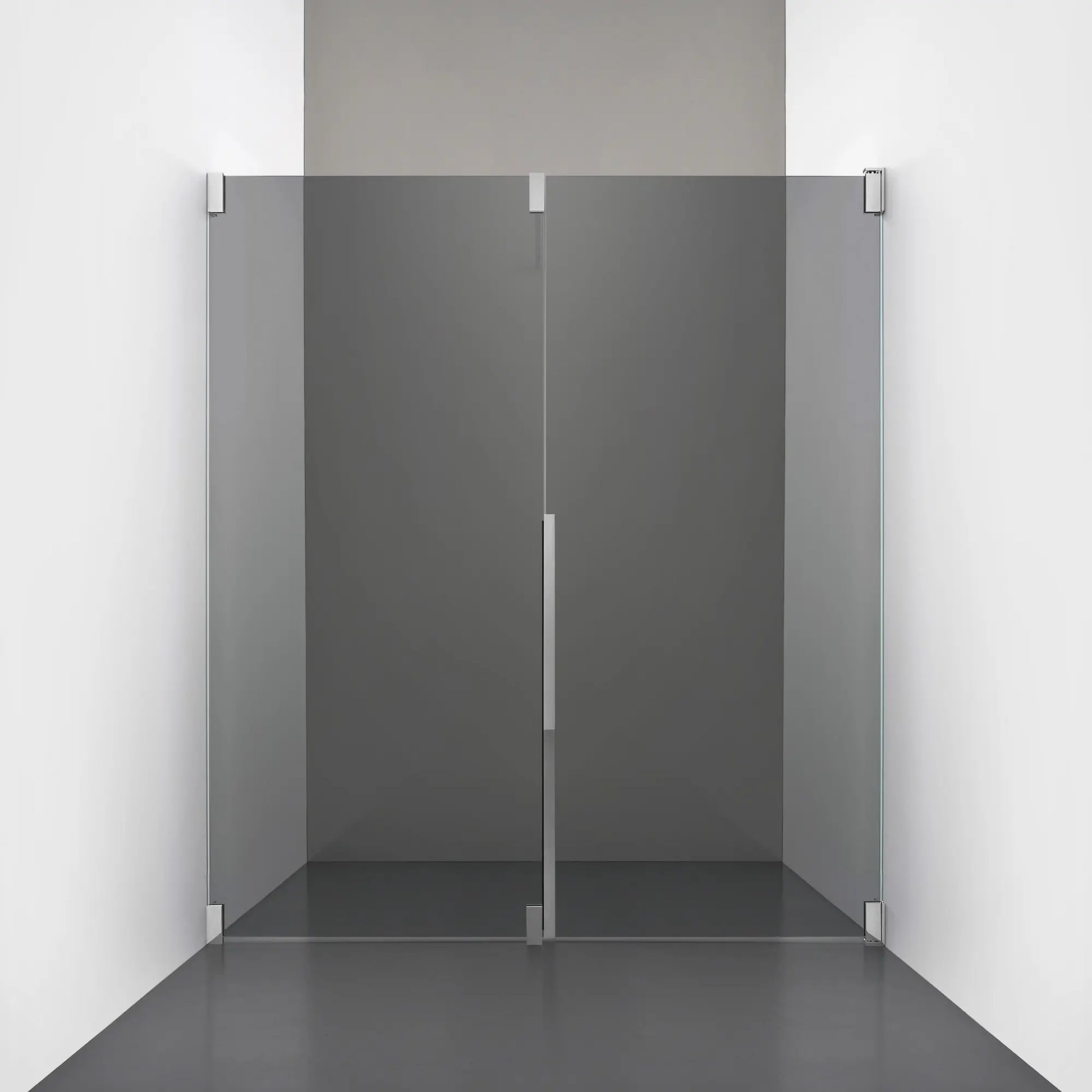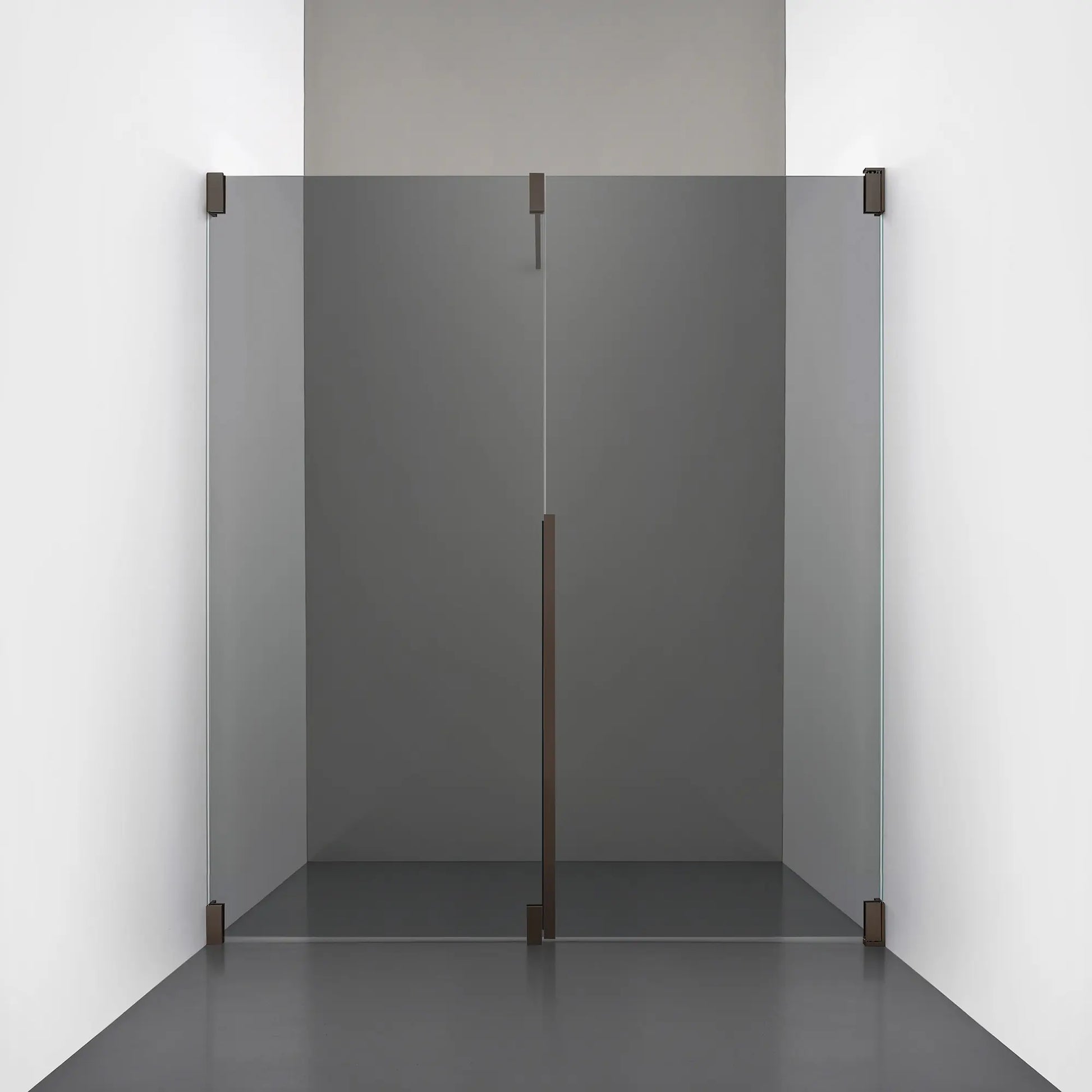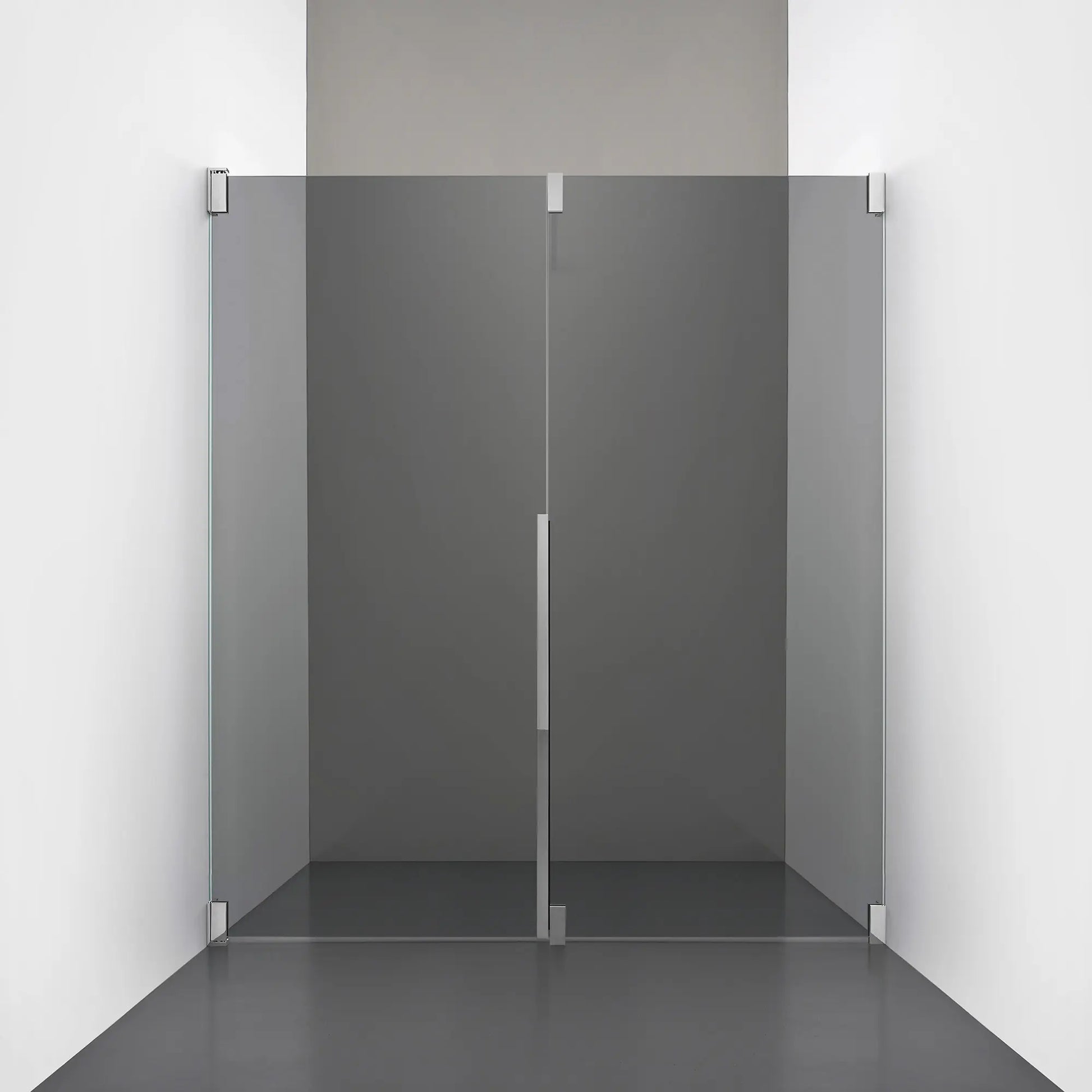 Denna modell kombinerar en fast, robust väggsektion med en öppningsbar dörr i 8 mm glas, vilket skapar en avskild duschnisch med en öppen känsla. Den fasta väggen bidrar till konstruktionens stabilitet, medan den öppningsbara delen möjliggör en generös duschingång. Handtaget integreras direkt i glaset och kompletteras med eleganta beslag i massiv mässing.
