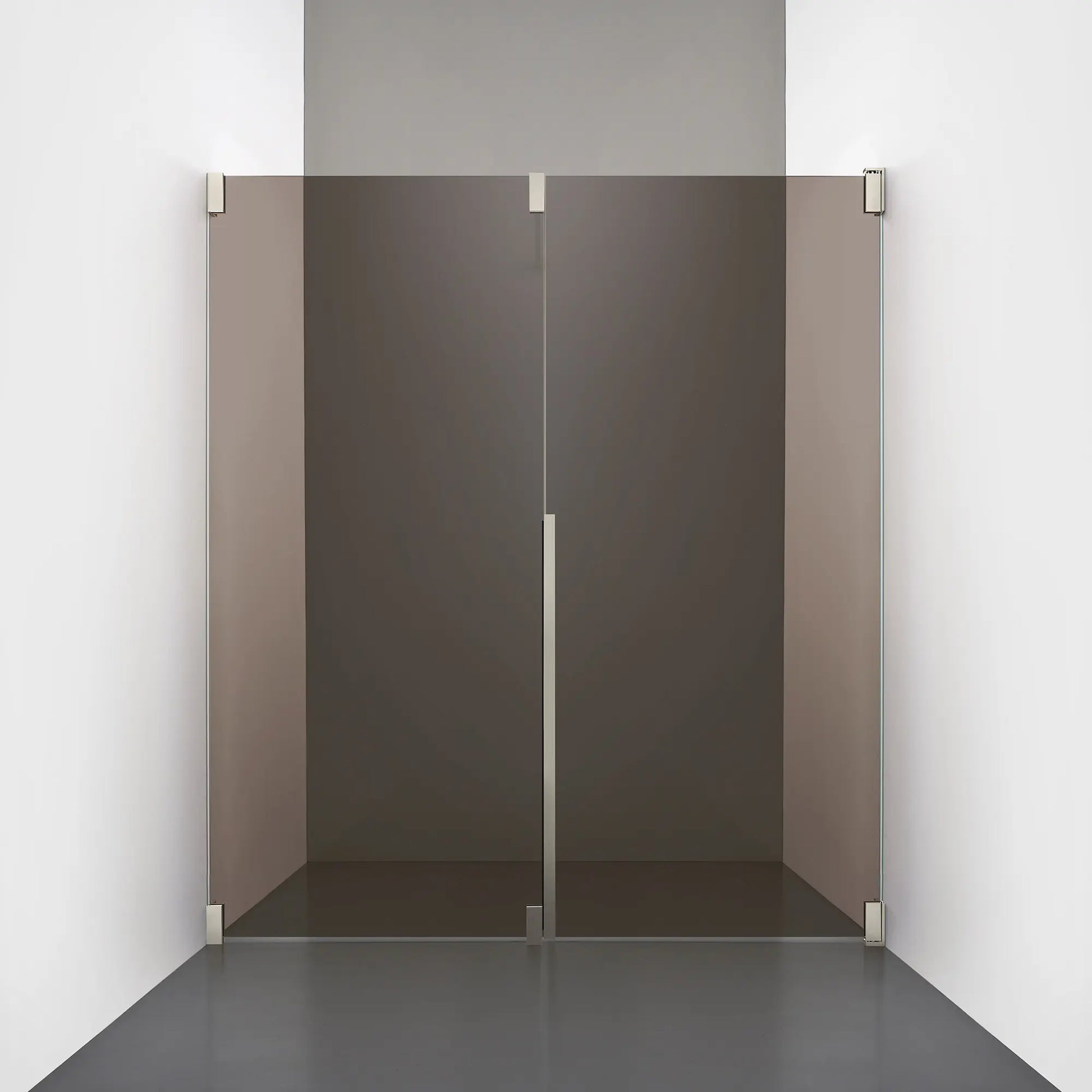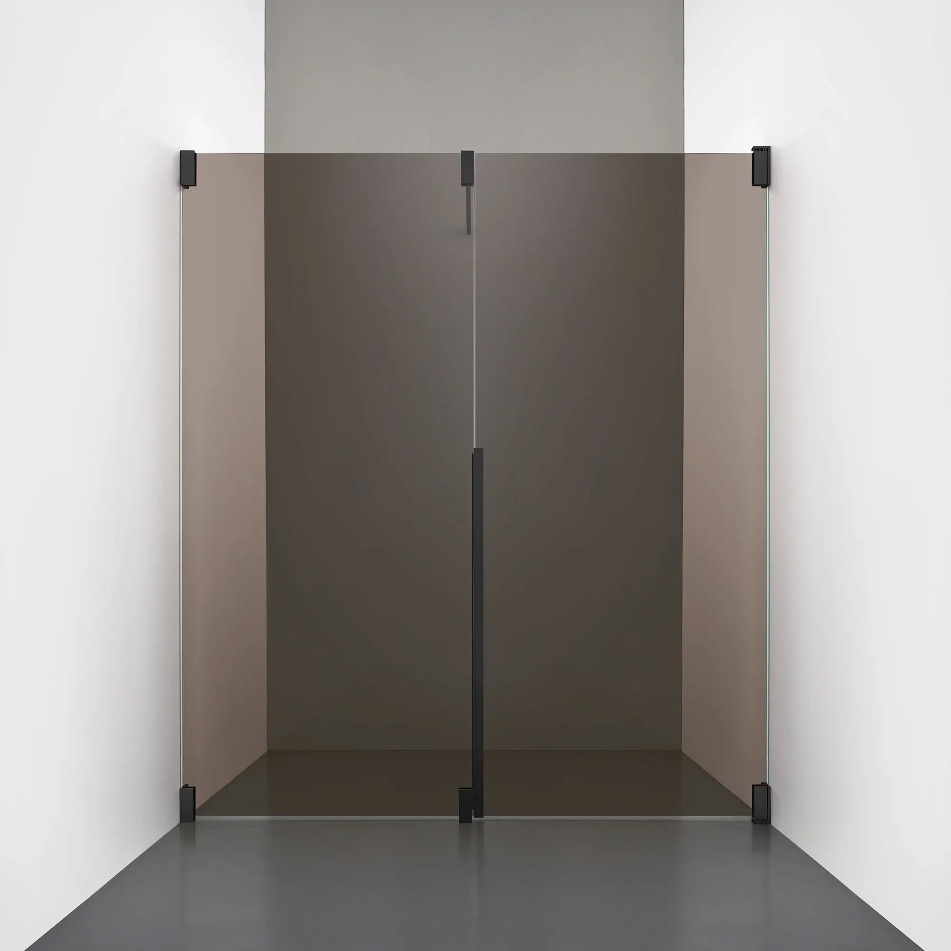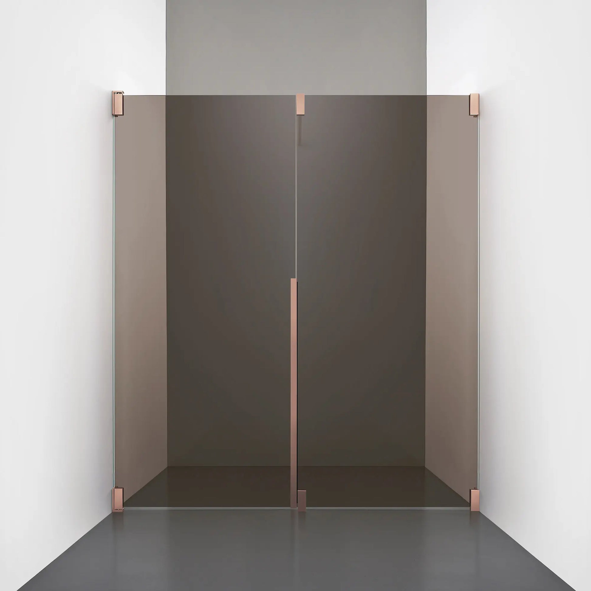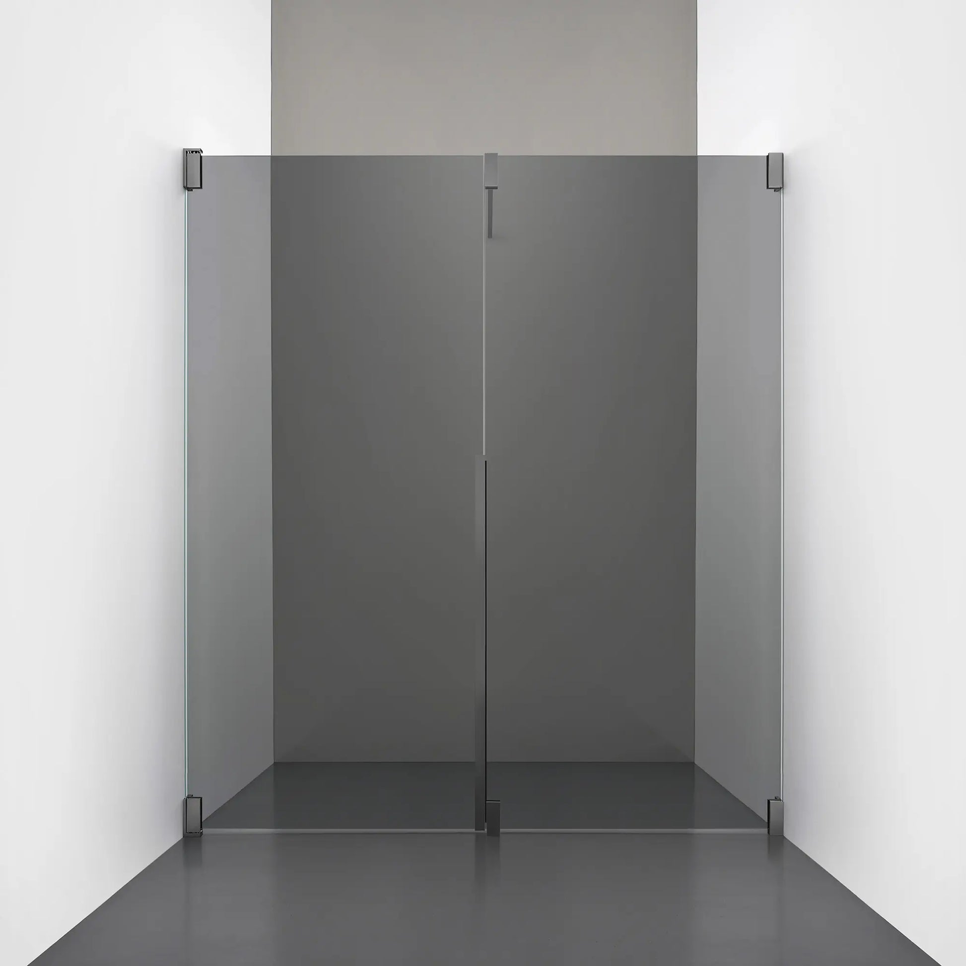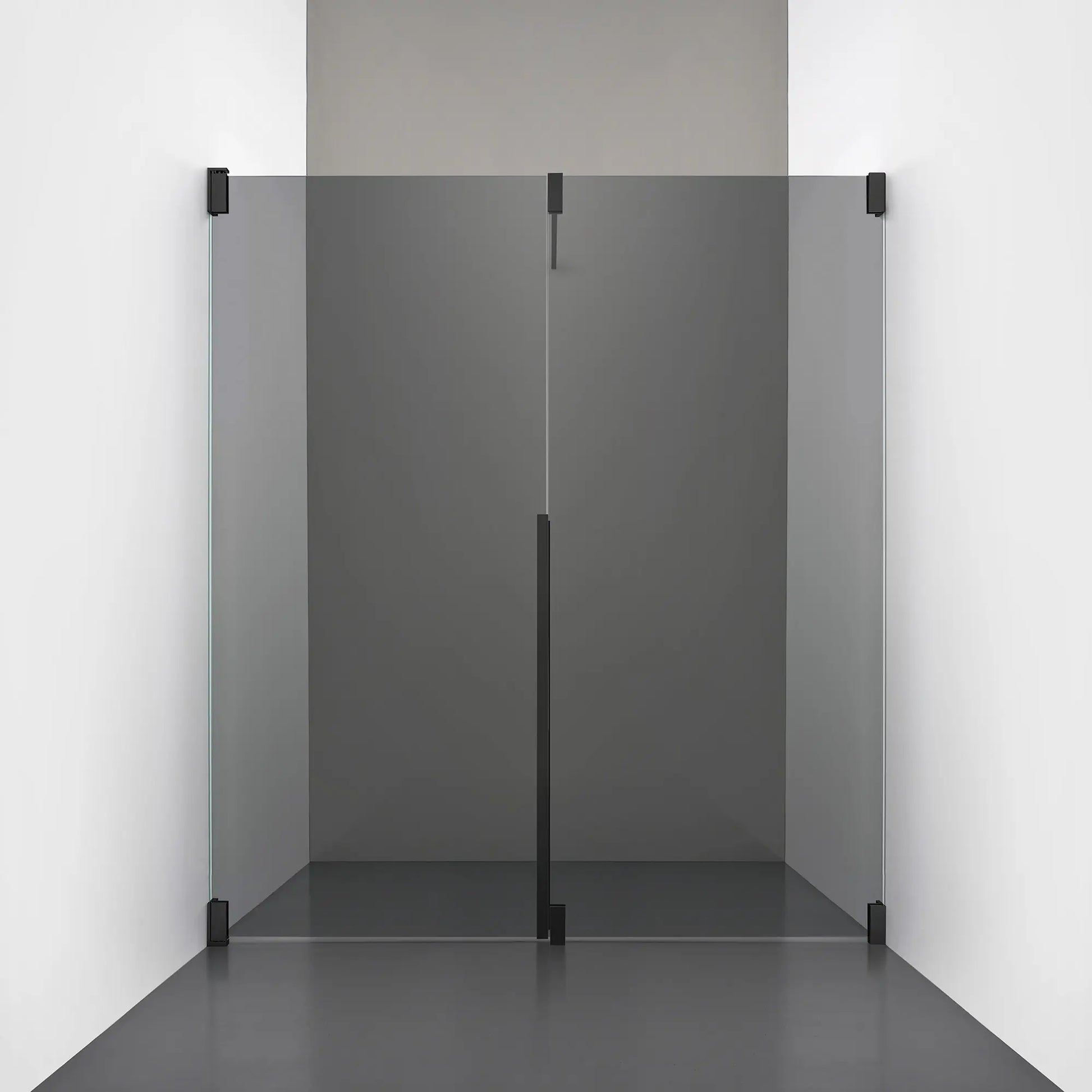 Denna modell kombinerar en fast, robust väggsektion med en öppningsbar dörr i 8 mm glas, vilket skapar en avskild duschnisch med en öppen känsla. Den fasta väggen bidrar till konstruktionens stabilitet, medan den öppningsbara delen möjliggör en generös duschingång. Handtaget integreras direkt i glaset och kompletteras med eleganta beslag i massiv mässing.