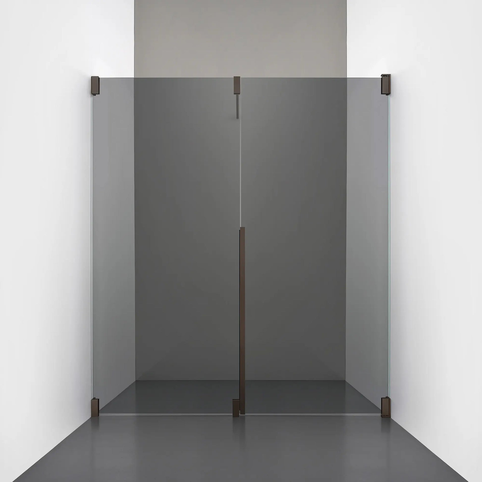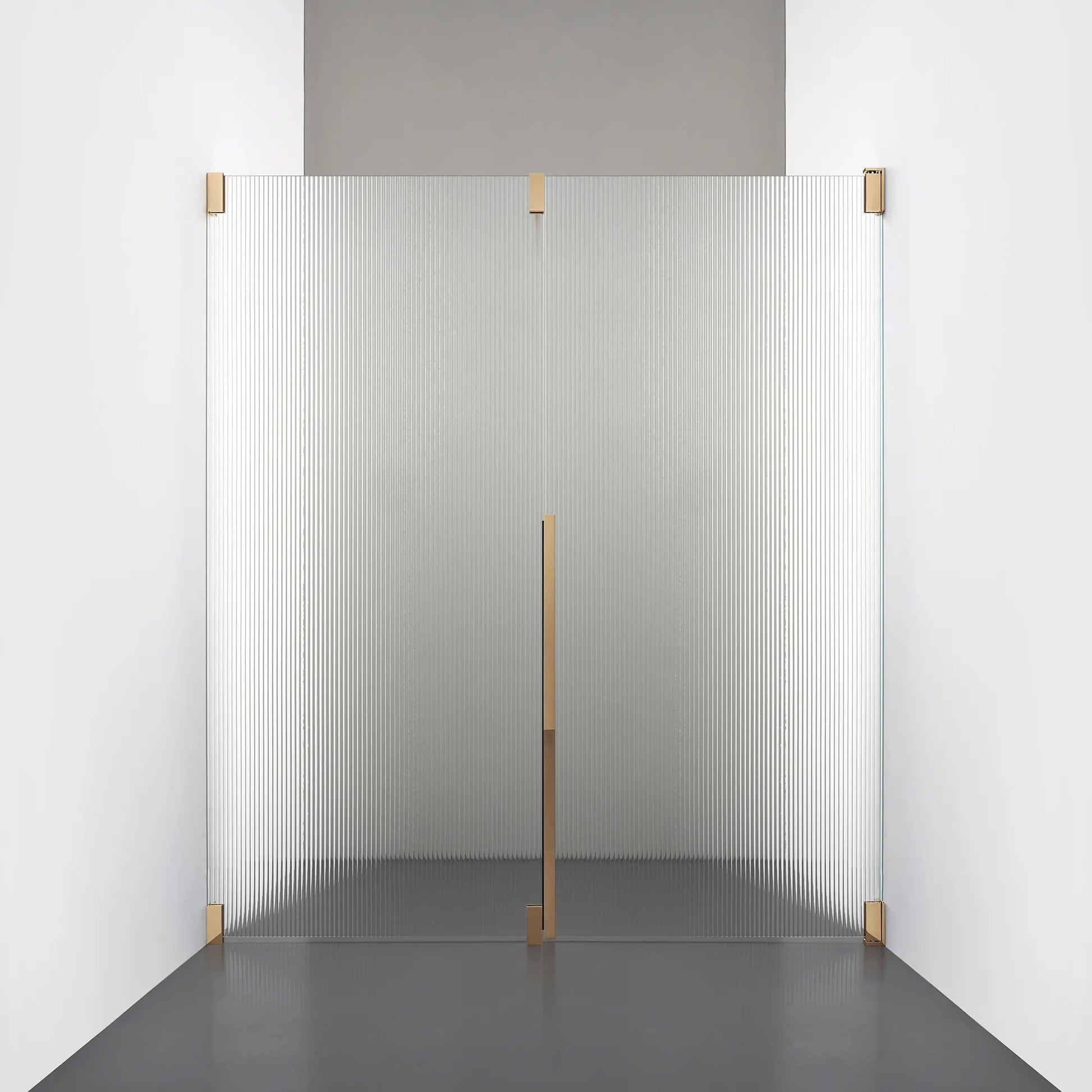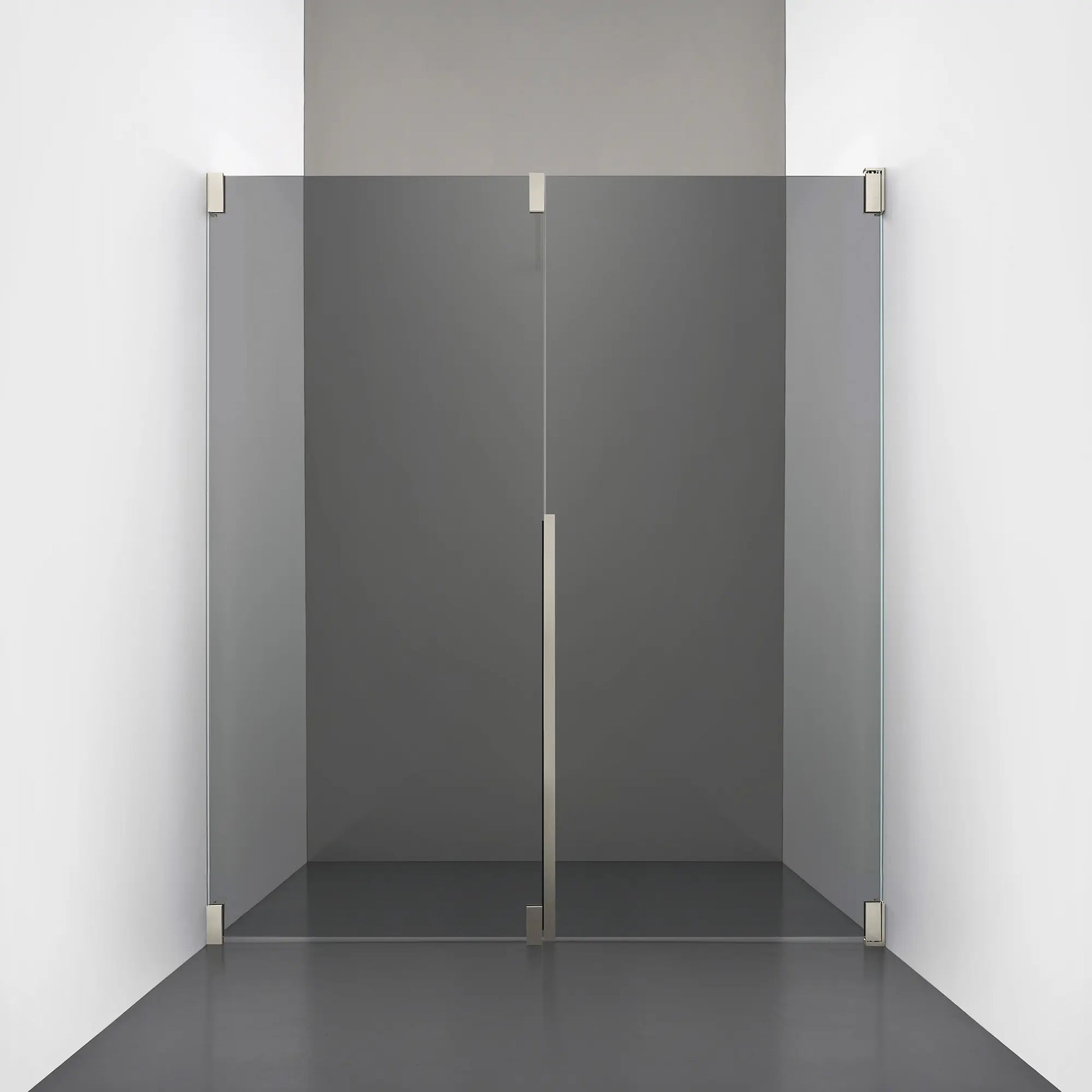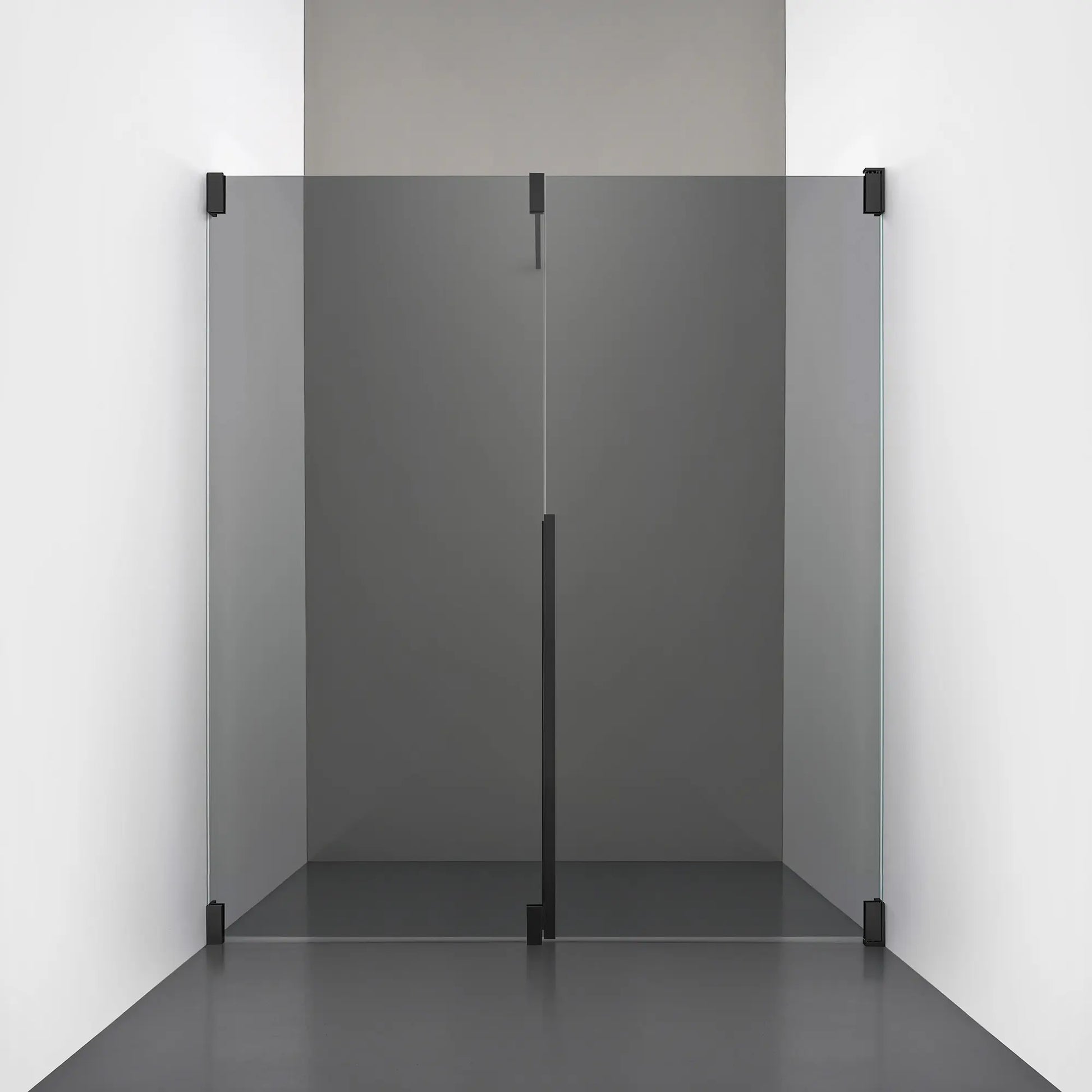 Denna modell kombinerar en fast, robust väggsektion med en öppningsbar dörr i 8 mm glas, vilket skapar en avskild duschnisch med en öppen känsla. Den fasta väggen bidrar till konstruktionens stabilitet, medan den öppningsbara delen möjliggör en generös duschingång. Handtaget integreras direkt i glaset och kompletteras med eleganta beslag i massiv mässing.