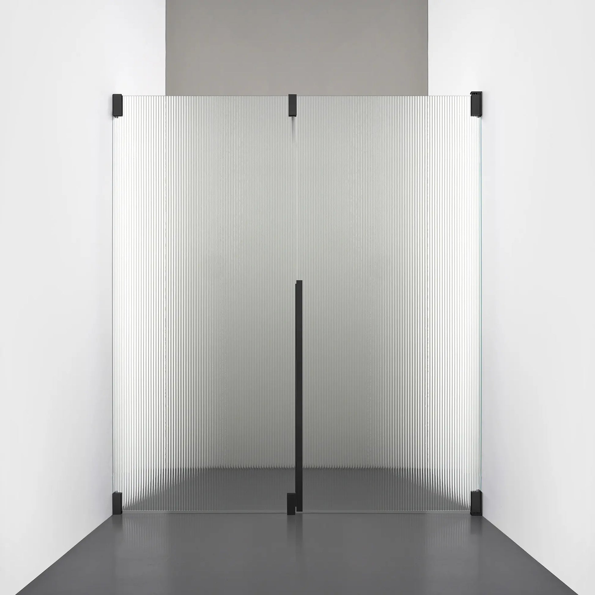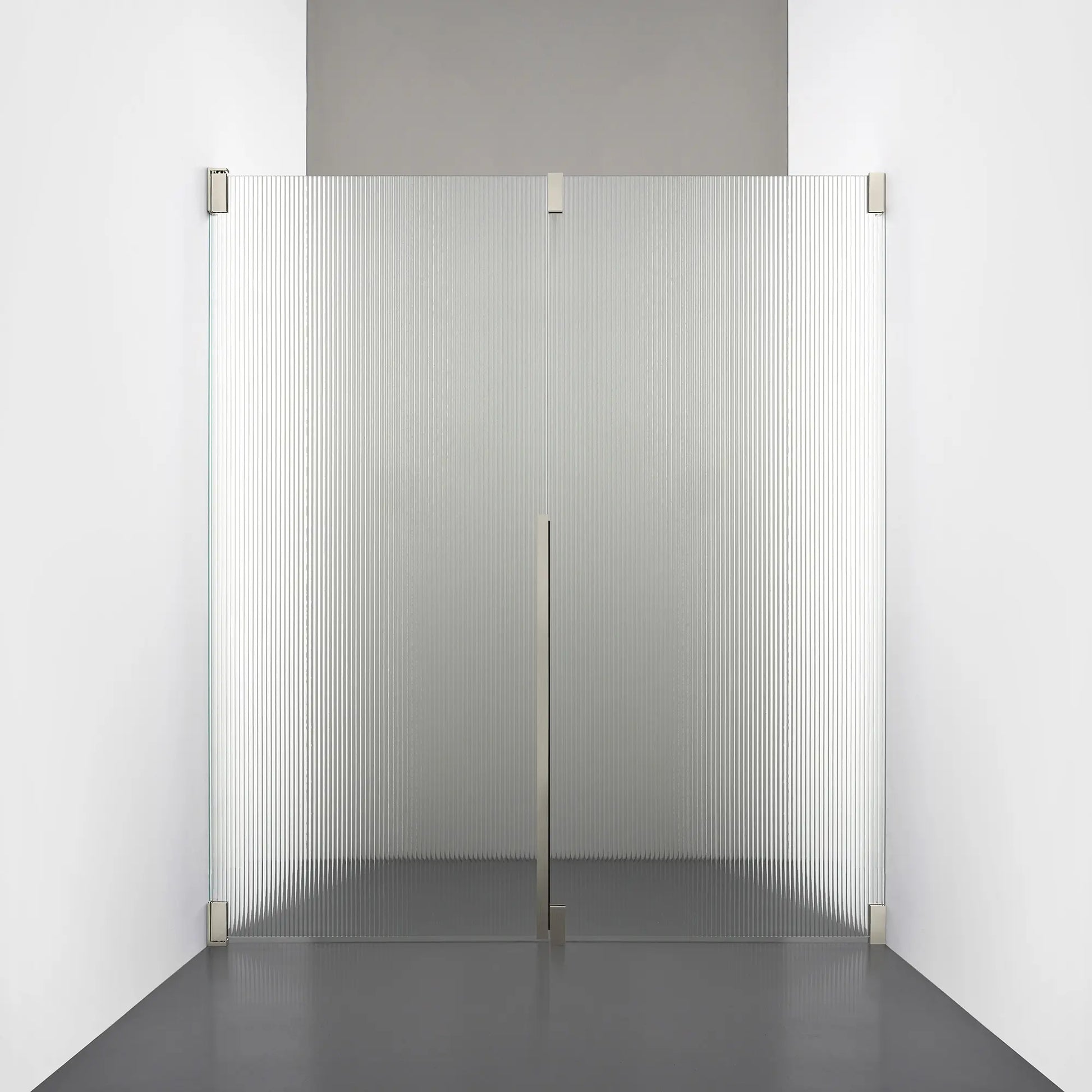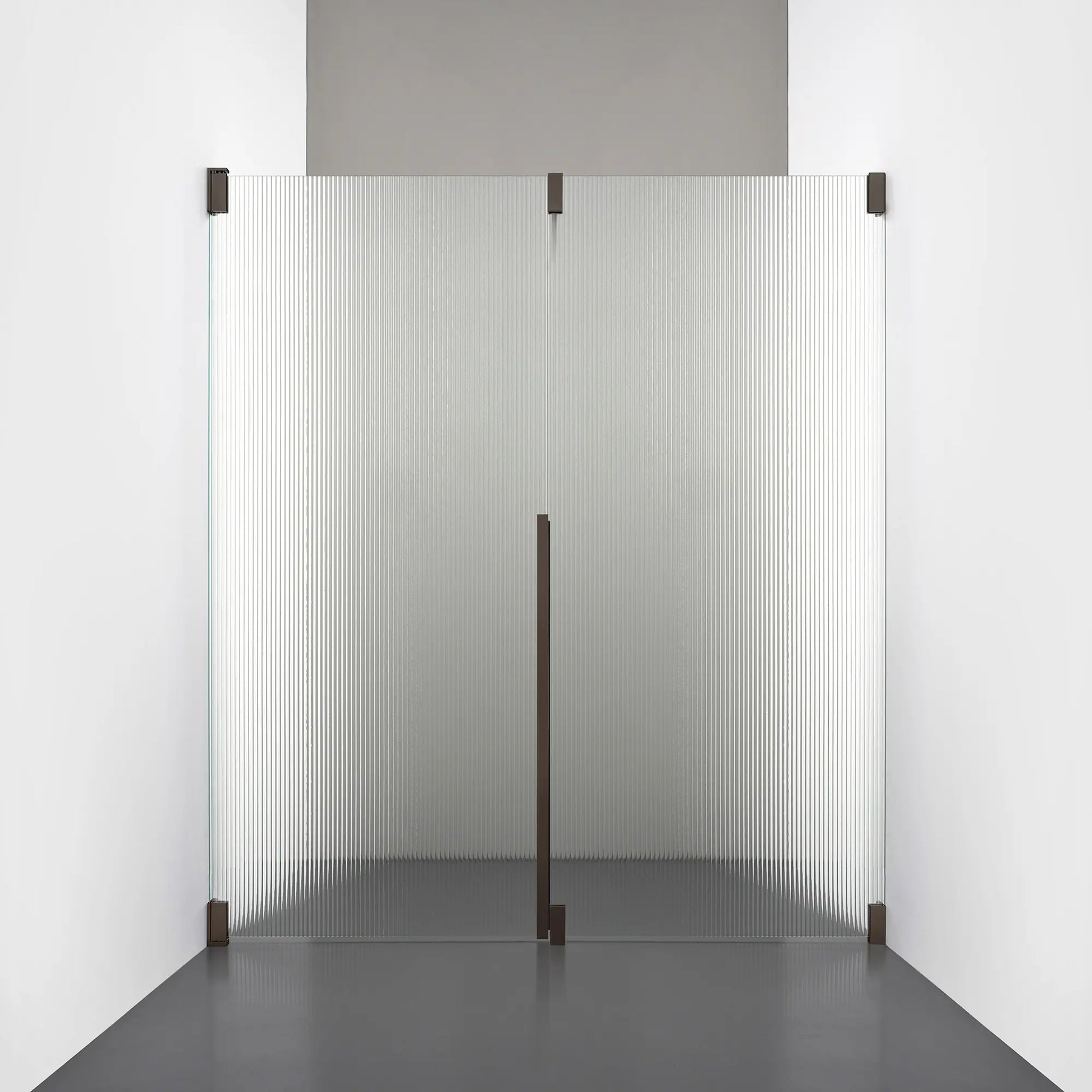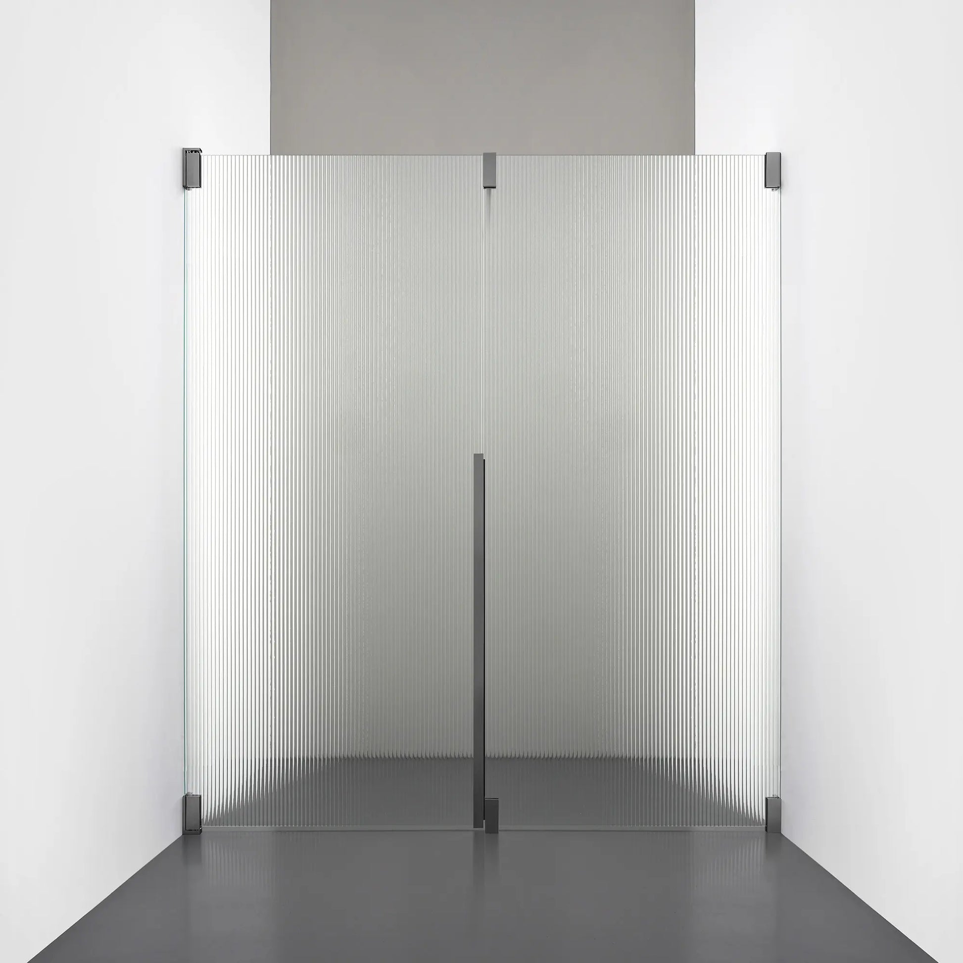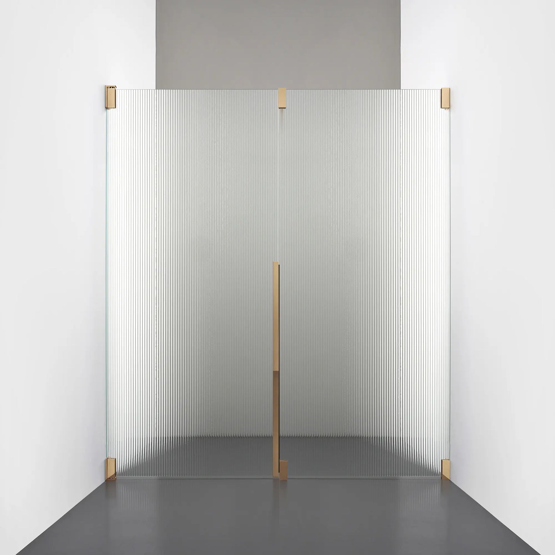 Denna modell kombinerar en fast, robust väggsektion med en öppningsbar dörr i 8 mm glas, vilket skapar en avskild duschnisch med en öppen känsla. Den fasta väggen bidrar till konstruktionens stabilitet, medan den öppningsbara delen möjliggör en generös duschingång. Handtaget integreras direkt i glaset och kompletteras med eleganta beslag i massiv mässing.