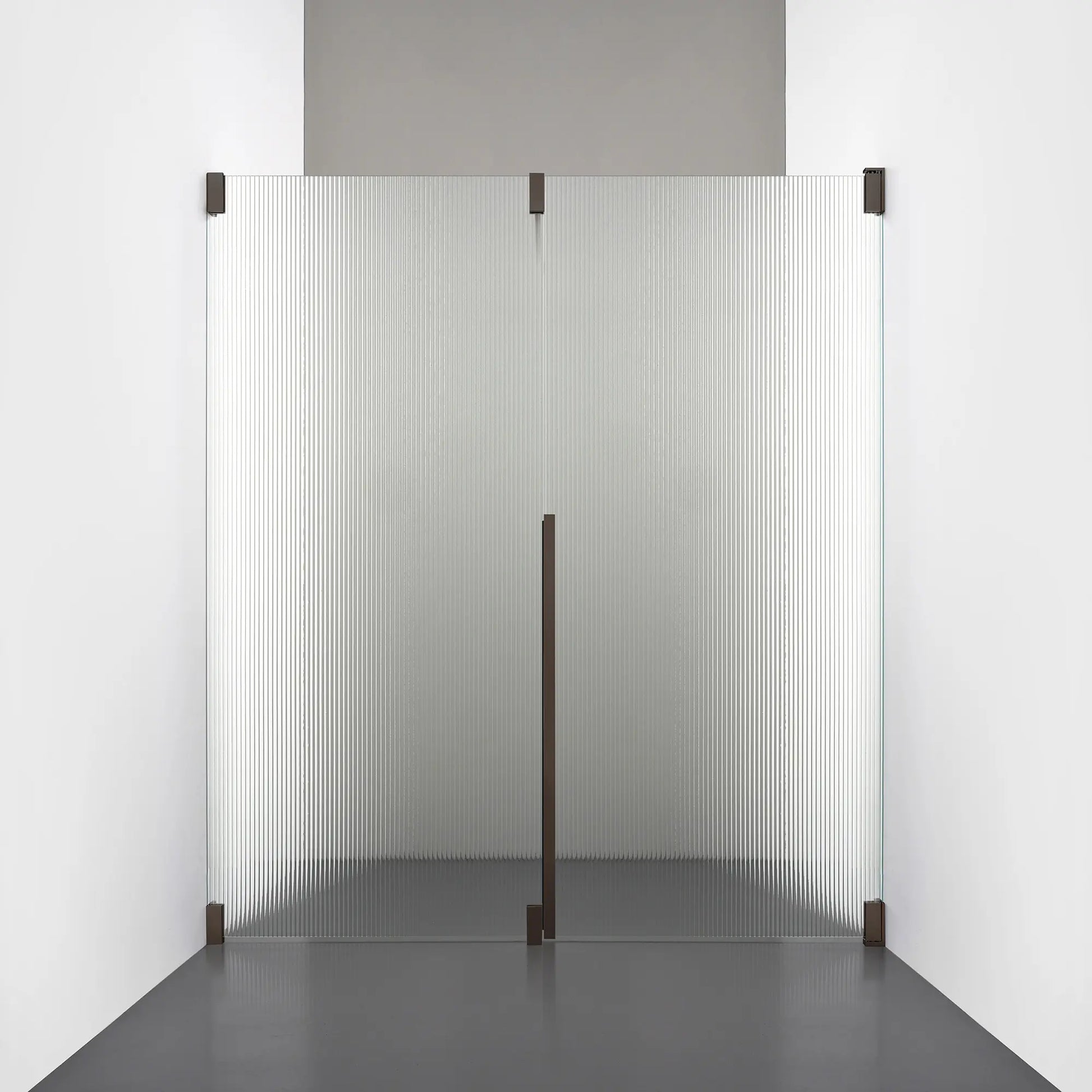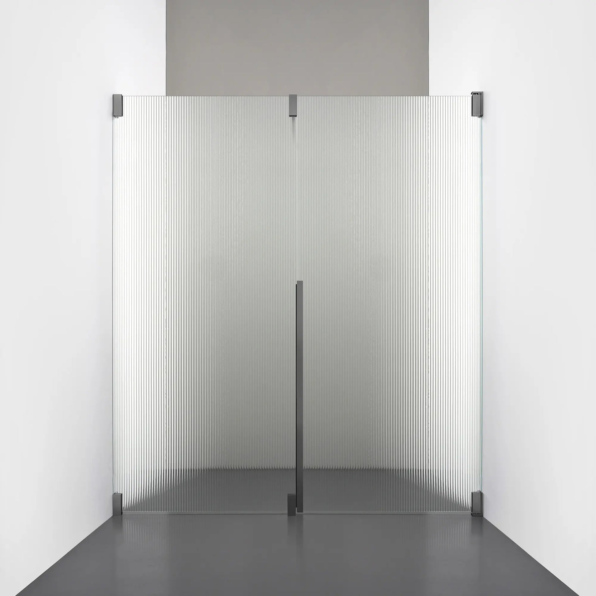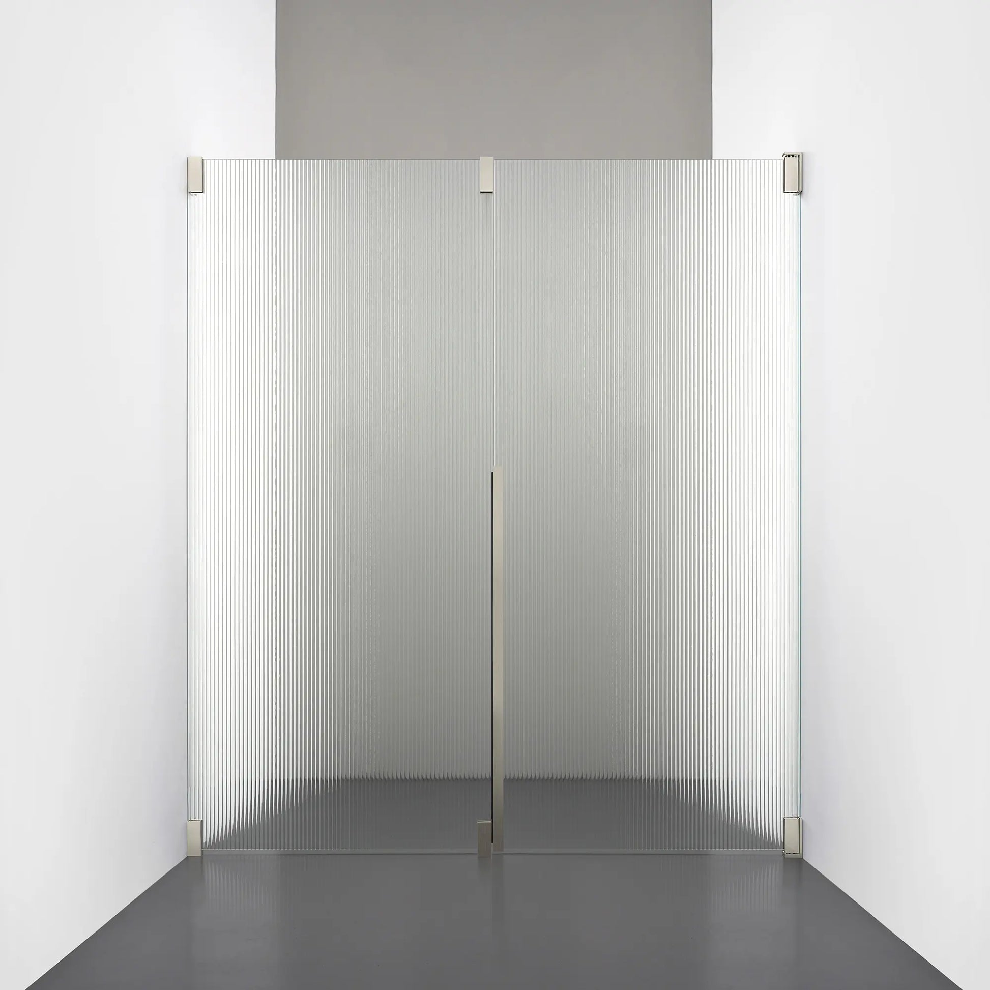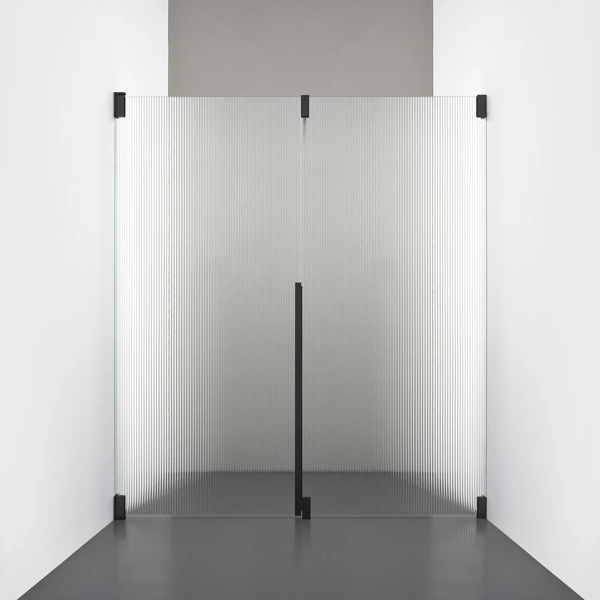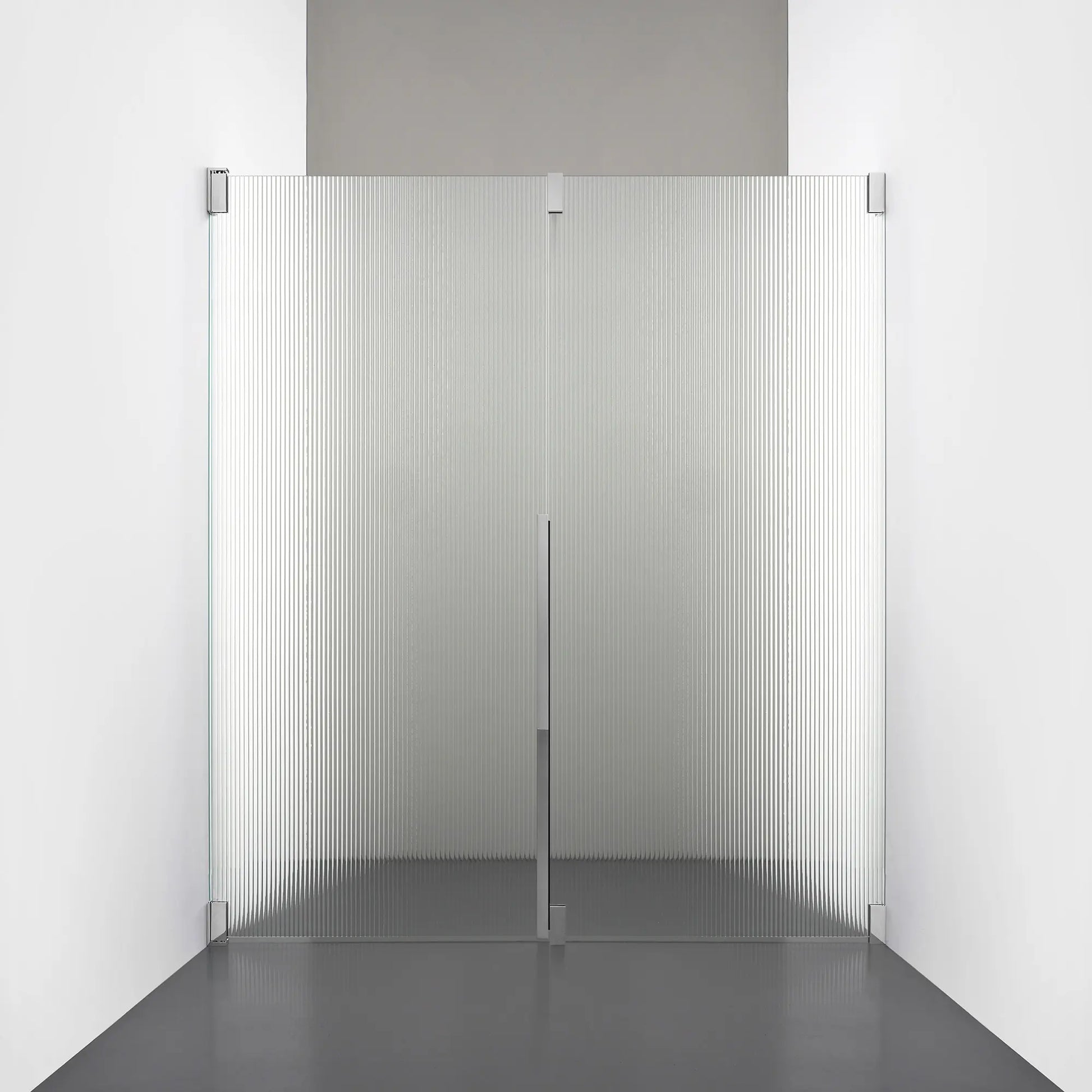 Denna modell kombinerar en fast, robust väggsektion med en öppningsbar dörr i 8 mm glas, vilket skapar en avskild duschnisch med en öppen känsla. Den fasta väggen bidrar till konstruktionens stabilitet, medan den öppningsbara delen möjliggör en generös duschingång. Handtaget integreras direkt i glaset och kompletteras med eleganta beslag i massiv mässing.