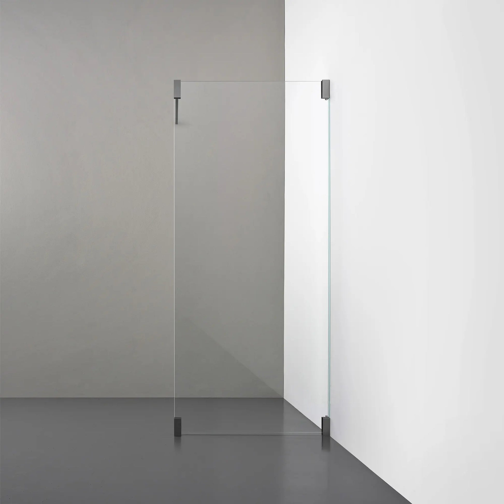 En enkel, rak duschvägg i 8 mm klarglas. Denna modell kommer med elegant beslag i massiv mässing med olika ytor, vilket ger en modern och exklusiv känsla till duschutrymmet.
